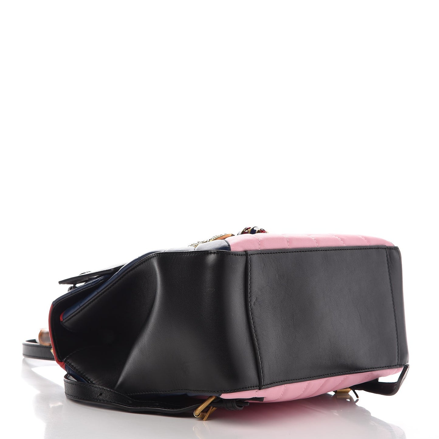 This is an authentic GUCCI Calfskin Queen Margaret Backpack in Light Pink, White, Hibiscus Red, and Blue. This stylish backpack is crafted of calfskin leather in off white ,red, pink and blue. The bag features a bamboo handle, two black leather straps, faux pearl detailing and a gold bee motif on the flap. The flap opens to a beige fabric interior with zipper and patched flat pockets. This is on-trend mini bag is versatile and stylish, by Gucci!Follow this item for alerts. Gucci is a registered trademark of Gucci. FASHIONPHILE is not affiliated with Gucci.