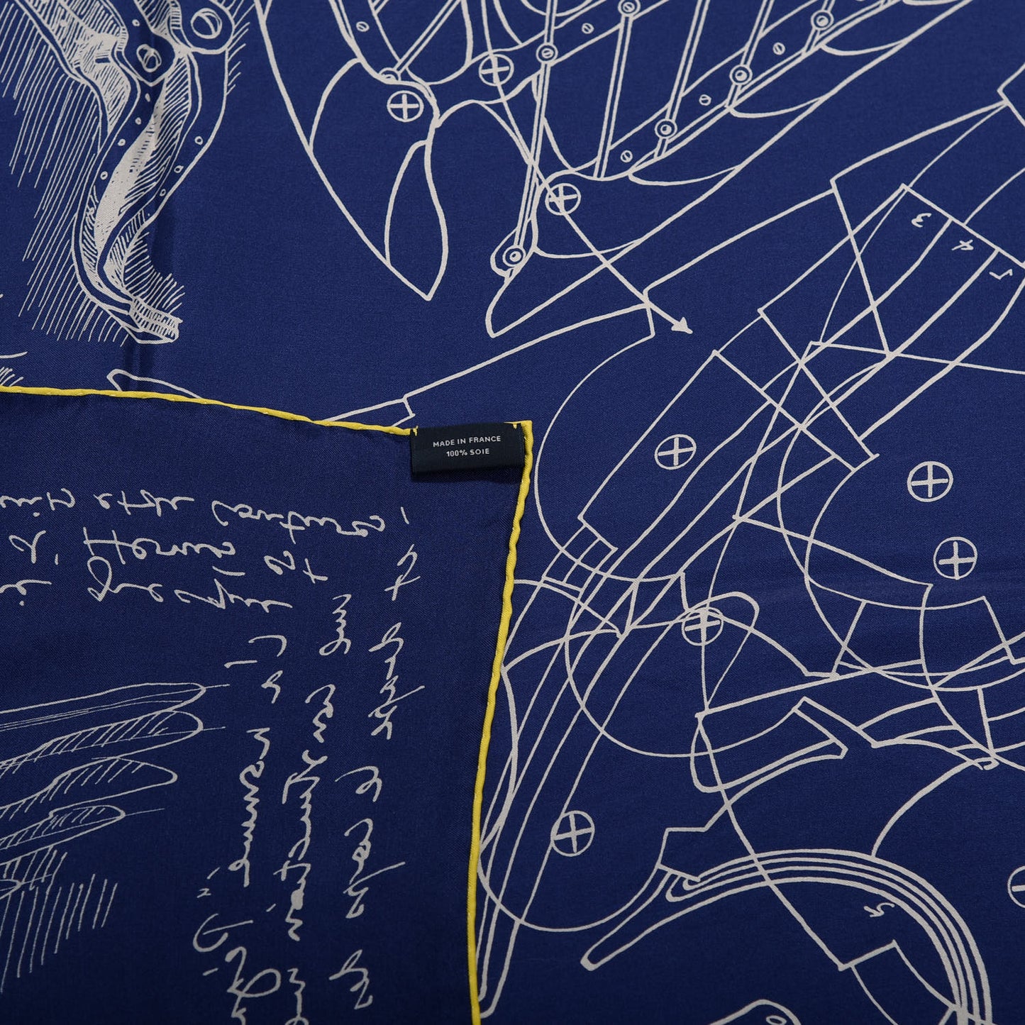 Silk Le Pegase d'Hermes Cut Wash 140 Scarf Marine Jaune Vif Multicolore