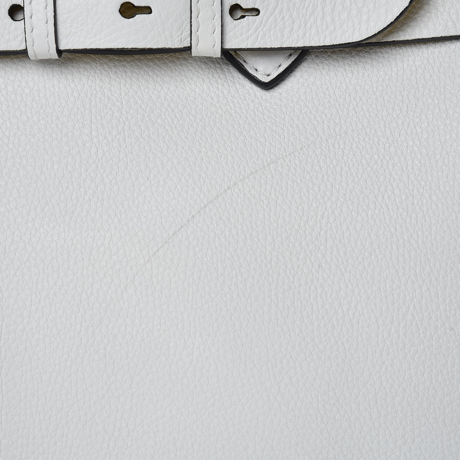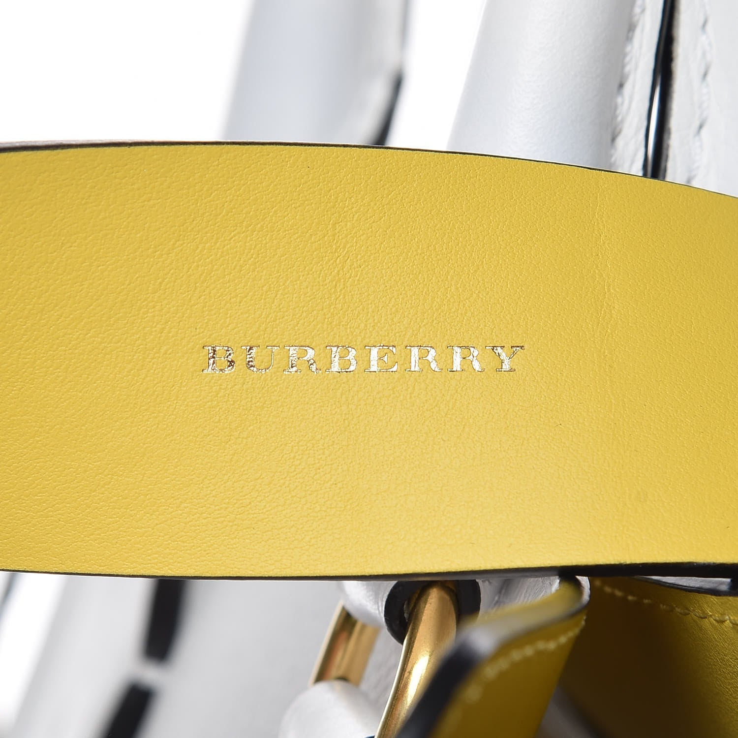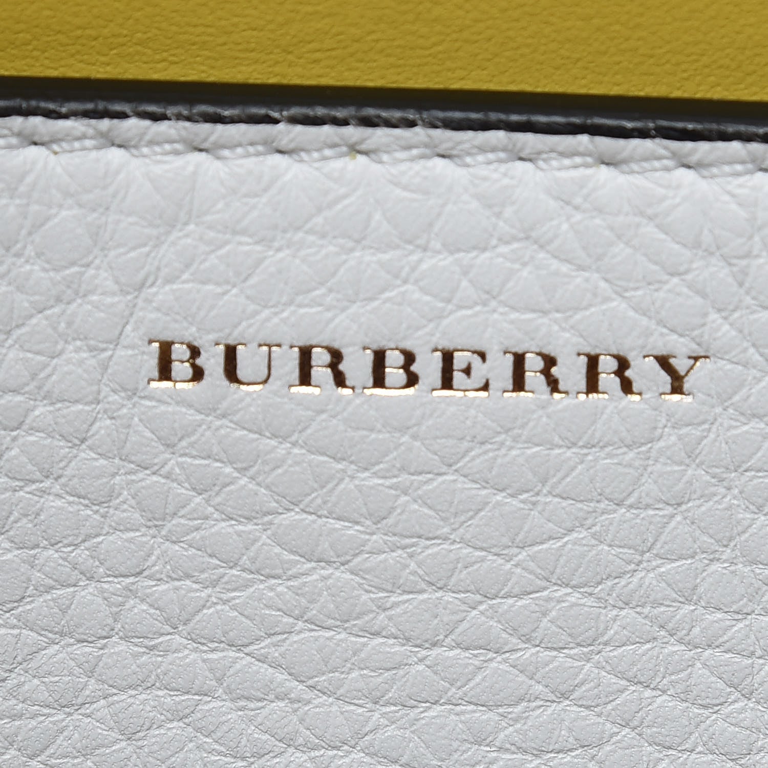 This is an authentic BURBERRY Soft Grain Calfskin Medium Belt Bag Chalk in White. This chic bag is a stylishly structured bag crafted in calfskin leather in white. The hand bag features two leather belt straps rolled leather top handles, and an adjustable leather shoulder strap. The top is open to a yellow leather interior with hanging patch pockets. This is an elegant hand bag with the forward fashion of Burberry!Follow this item for alerts. Burberry is a registered trademark of Burberry. FASHIONPHILE is not affiliated with Burberry.