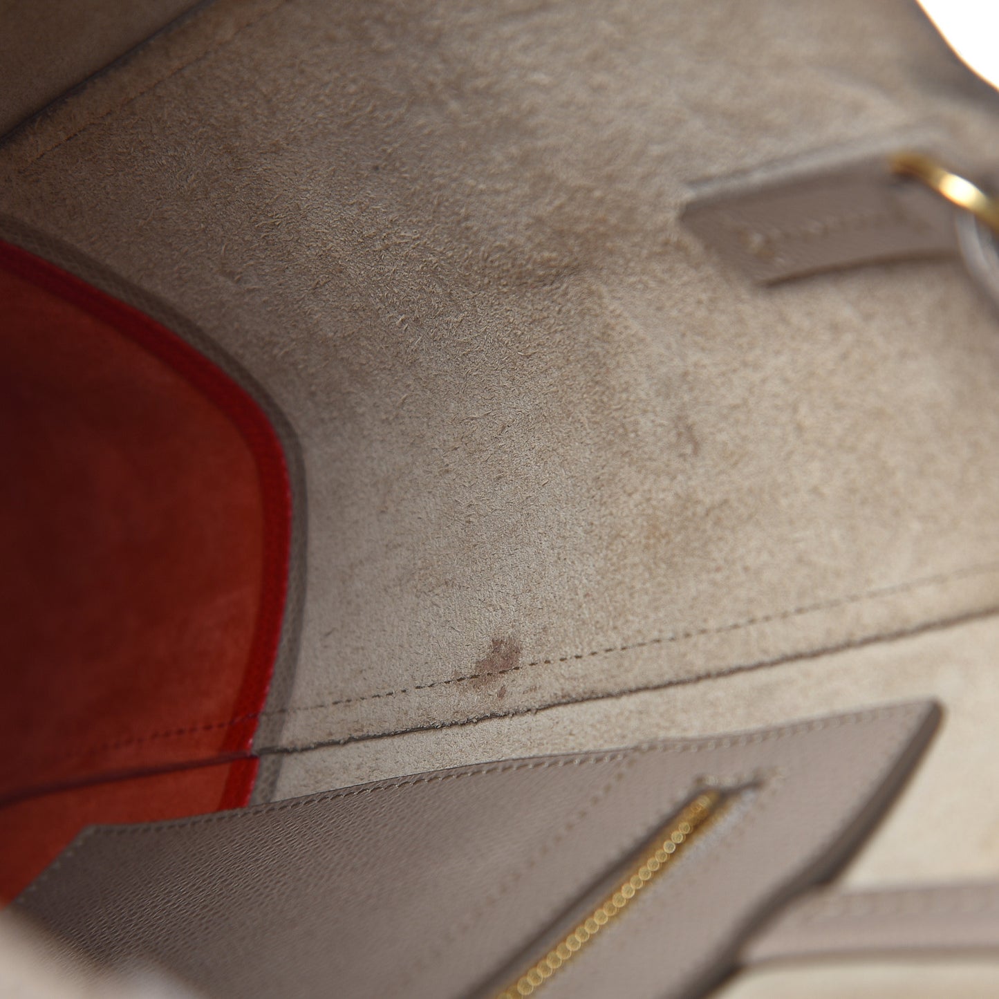 Grained Calfskin Small Vertical Bi-Cabas Beige Red