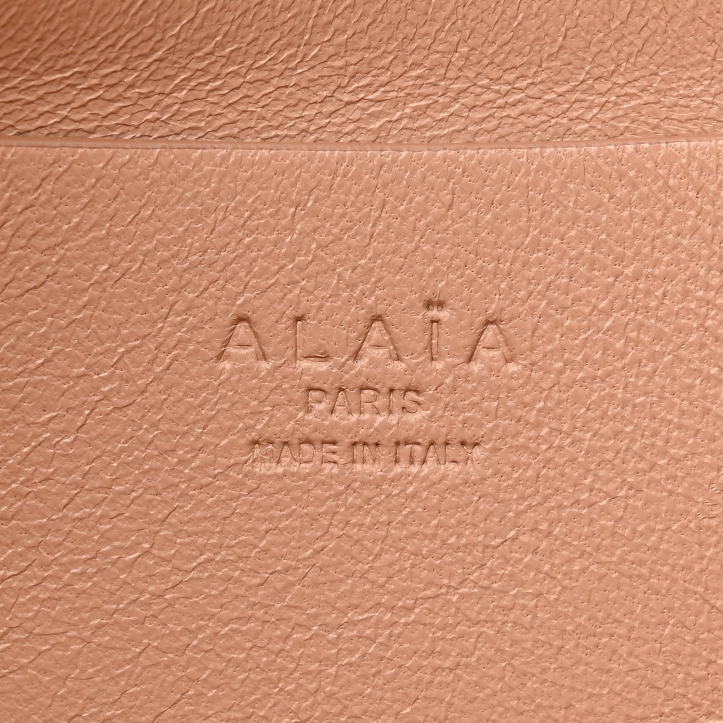This is an authentic ALAIA Lambskin Small Demi Lune Shoulder Bag in Nude. This half moon-shaped tote is crafted of dark beige lambskin leather with grommets throughout. The bag features an adjustable leather strap and a zipper top. There is a spacious beige leather interior with a zipper pocket.Follow this item for alerts. Alaia is a registered trademark of Alaia. FASHIONPHILE is not affiliated with Alaia.