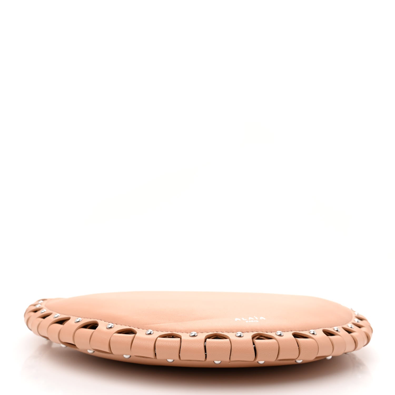 Alaia/ Bags/ Shoulder Bags /Alaia Lambskin Studded Chain Demi Lune Bag Nude
