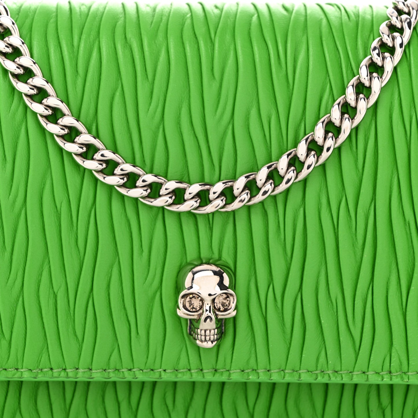 Alexander McQueen/ Bags/ Shoulder Bags /Alexander McQueen Lambskin Pleated Skull Small Chain Crossbody Bag Acid Green