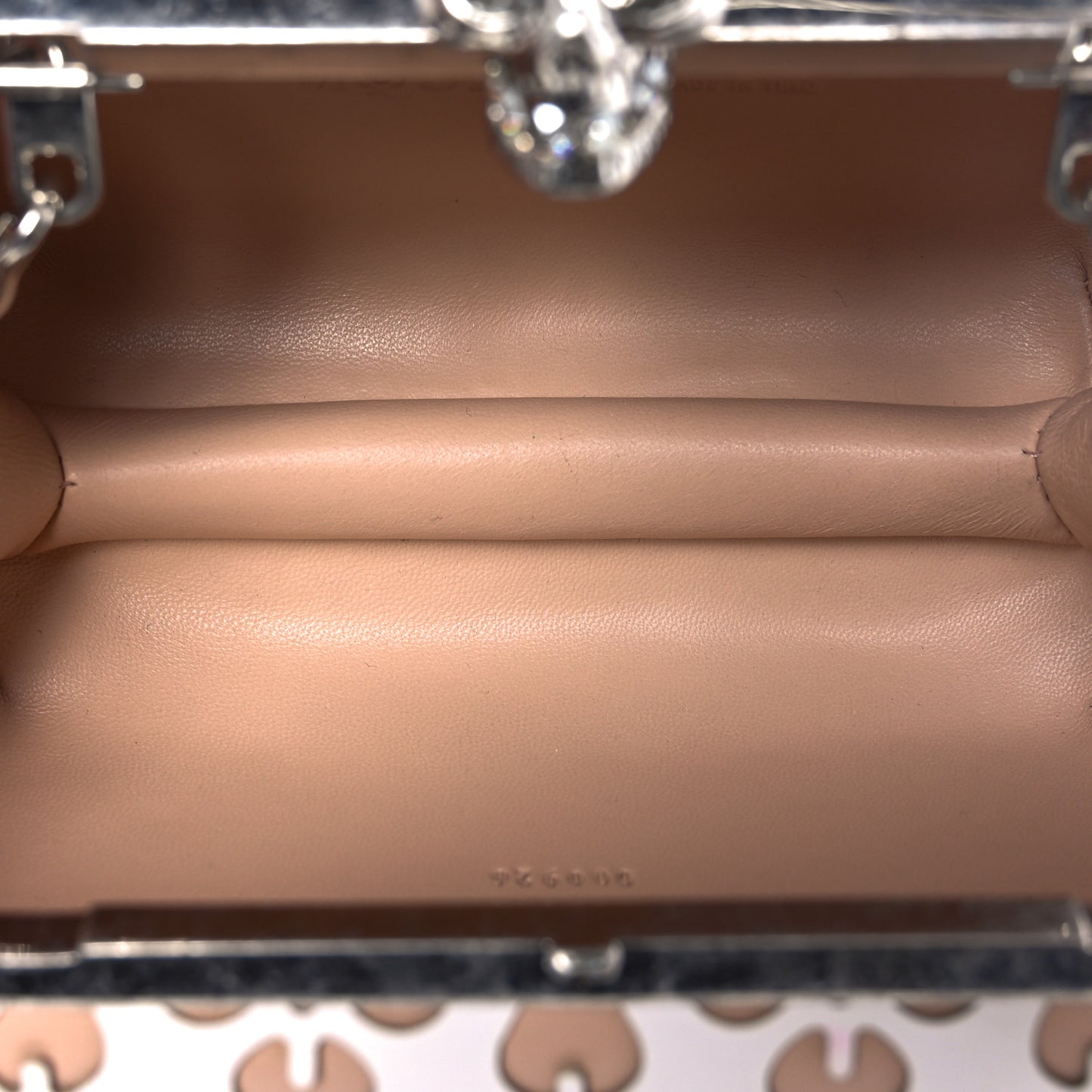 Nappa Laser-Cut Skull Box Chain Clutch Nude White