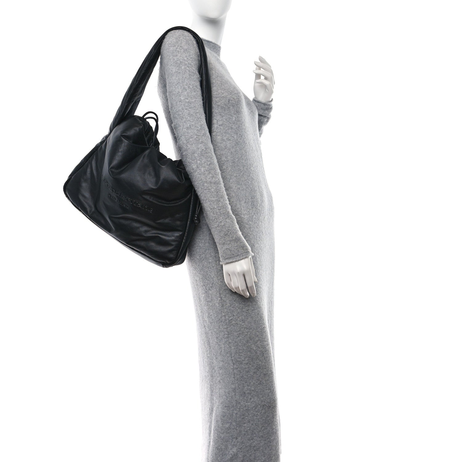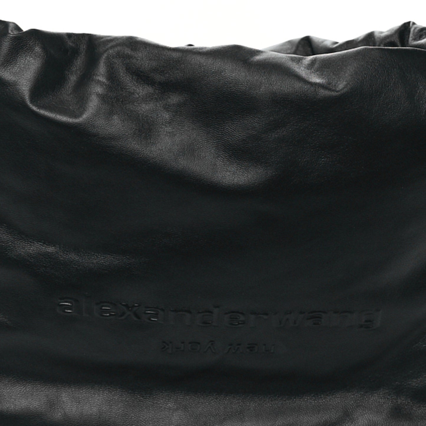 This is an authentic ALEXANDER WANG Lambskin Large Ryan Puffer Bag in Black. This stylish mini tote is crafted of lambskin leather. The bag features signature Alexander Wang logo on the front and opens with a cinch cord to a matching leather interior with pockets.Follow this item for alerts. Alexander Wang is a registered trademark of Alexander Wang. FASHIONPHILE is not affiliated with Alexander Wang.
