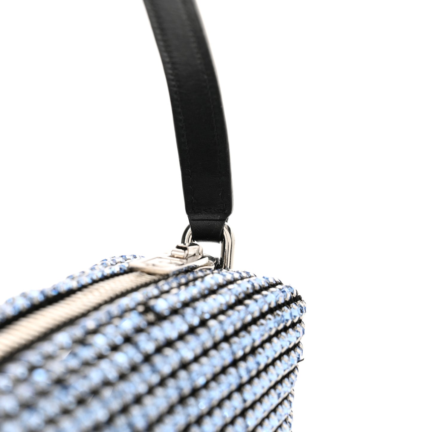 This is an authentic ALEXANDER WANG Mesh Crystal Rhinestone Mini Heiress Pouch in Navy. This stylish mini tote is crafted of blue crystal mesh with a black leather strap and trim. The top zipper opens to a black fabric interior with two leather card slots.Follow this item for alerts. Alexander Wang is a registered trademark of Alexander Wang. FASHIONPHILE is not affiliated with Alexander Wang.