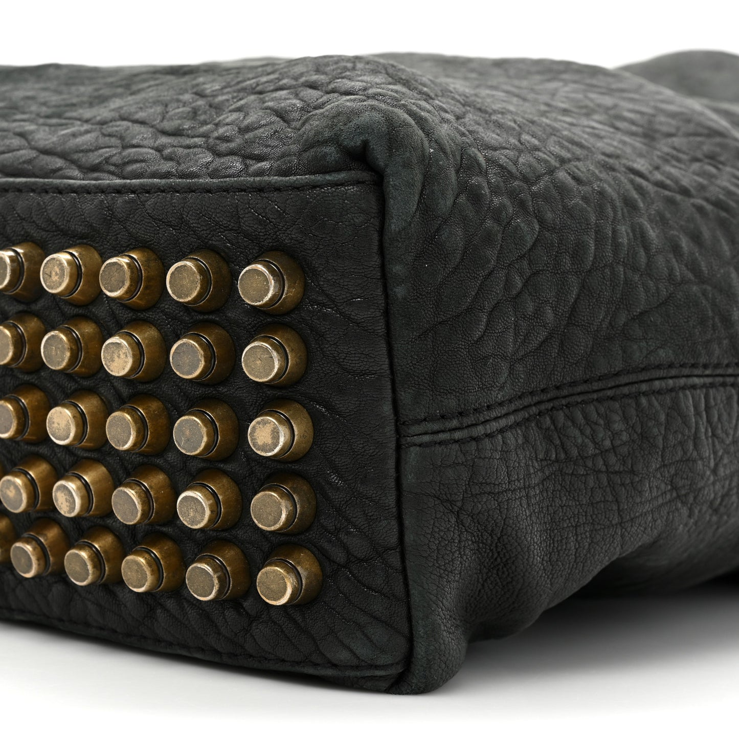 This is an authentic ALEXANDER WANG Pebbled Lambskin Darcy Hobo in Black. This stylish hobo is crafted of richly textured leather. The bag features a looping reinforced leather shoulder strap with brass hardware and a full base of large studs. The top of the handbag is open to a black fabric interior with a zipper pocket.Follow this item for alerts. Alexander Wang is a registered trademark of Alexander Wang. FASHIONPHILE is not affiliated with Alexander Wang.