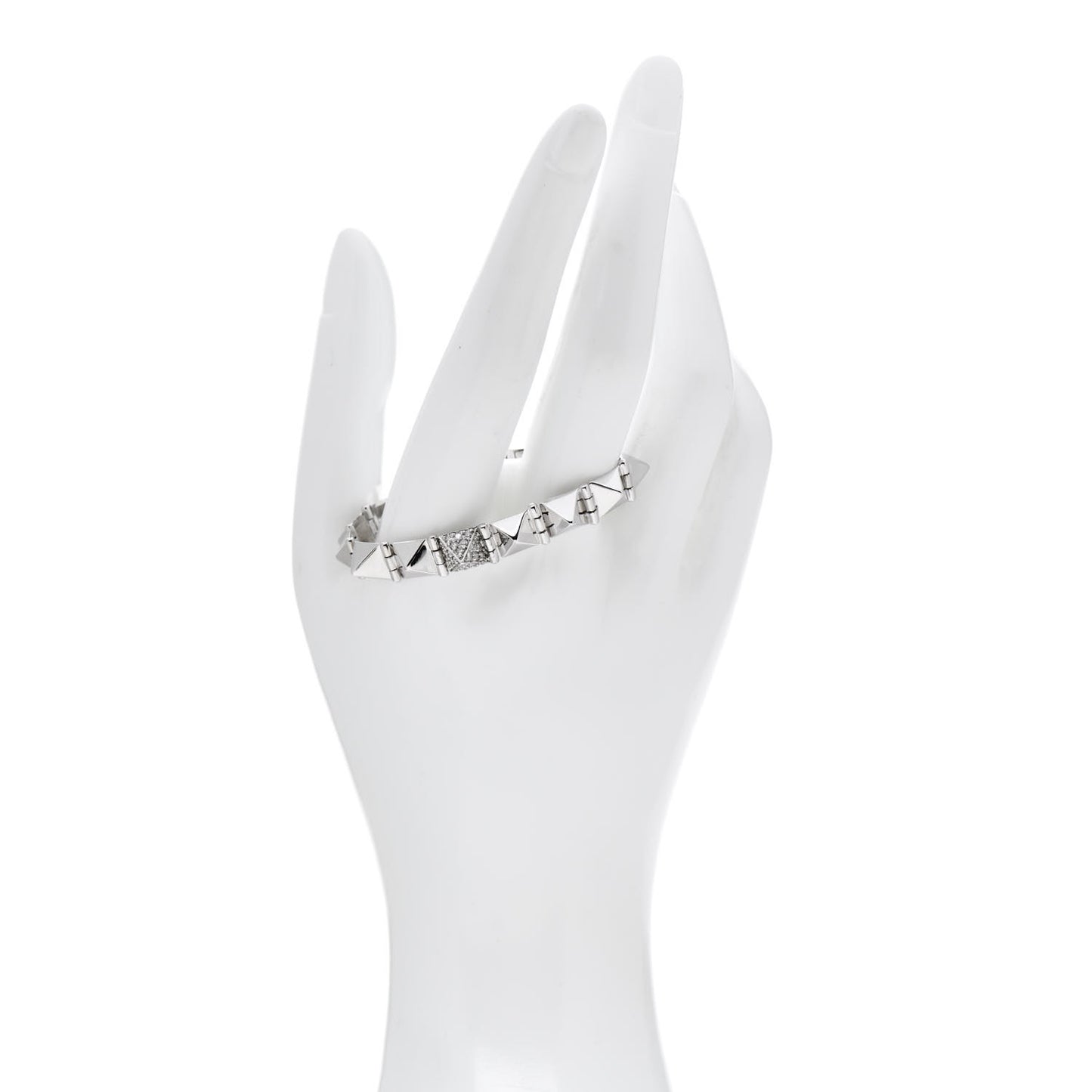 This is an authentic ANITA KO 14K White Gold Diamond Small Spike Bracelet. The bracelet is crafted of 14 karat white gold and features pointed pyramid studs with the center spike accented with diamonds weighing approximately .25 total carat weight.
