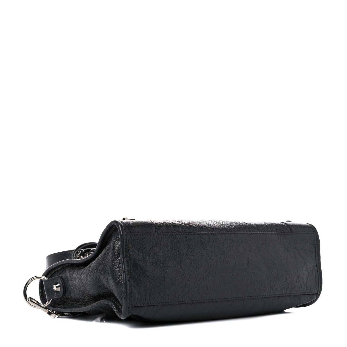 This is an authentic BALENCIAGA Agneau Classic Silver Hardware S City in Gris Fossile. This stylish tote is crafted of distressed lambskin leather in dark grey. The bag features top handles with hand-stitched detail, an optional shoulder strap, a frontal zipper pocket, leather belts and patches and silver hardware including buckles and studs. The top zipper opens to a black fabric interior with zipper and patch pockets.Follow this item for alerts. Balenciaga is a registered trademark of Balenciaga. FASHIONPHILE is not affiliated with Balenciaga.
