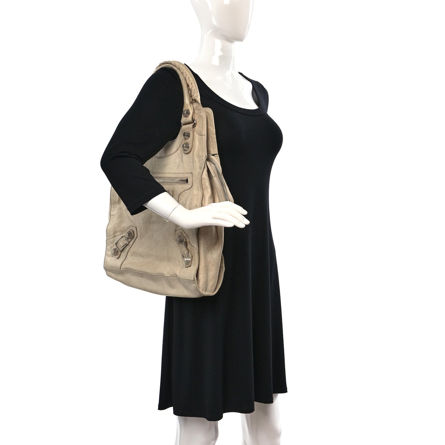 This is an authentic BALENCIAGA Agneau Giant 21 in Silver Hardware Folder in Sahara. This is a spacious tote that is finely crafted of ivory distressed lambskin with polished silver hardware including texturized studs, buckles and a front zippered pocket. The top zipper opens to a black fabric interior with two additional matching leather pockets. This is an excellent handbag, suitable for your everyday needs and more, by Balenciaga!Follow this item for alerts. Balenciaga is a registered trademark of Balenciaga. FASHIONPHILE is not affiliated with Balenciaga.