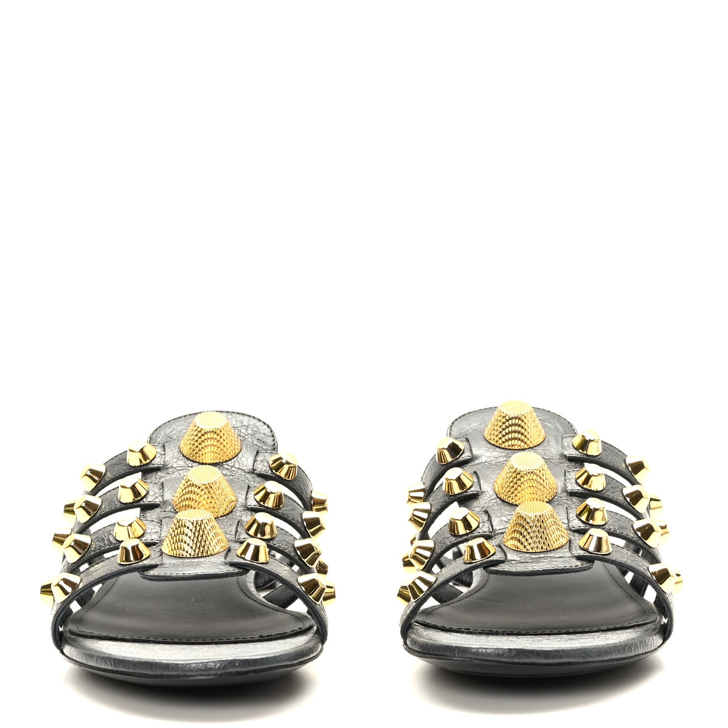 This is an authentic pair of BALENCIAGA Agneau Lambskin Giant Gold Hardware Sandals size 36 in Grey. These stylish sandal pumps are crafted of gray lambskin leather. These sandals feature giant gold studs along the straps.Follow this item for alerts. Balenciaga is a registered trademark of Balenciaga. FASHIONPHILE is not affiliated with Balenciaga.