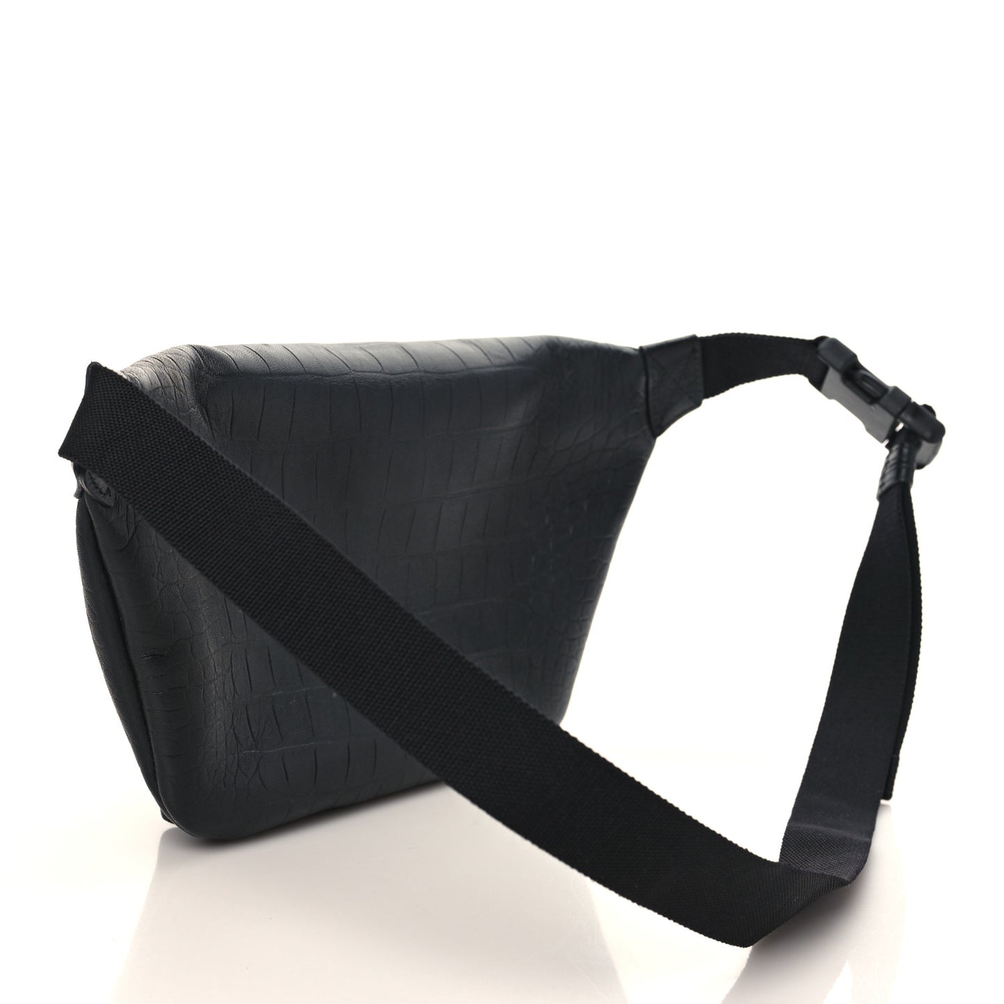 Balenciaga/ Bags/ Men's Bags /Balenciaga Calfskin Logo Crocodile Embossed Everyday Beltpack Black