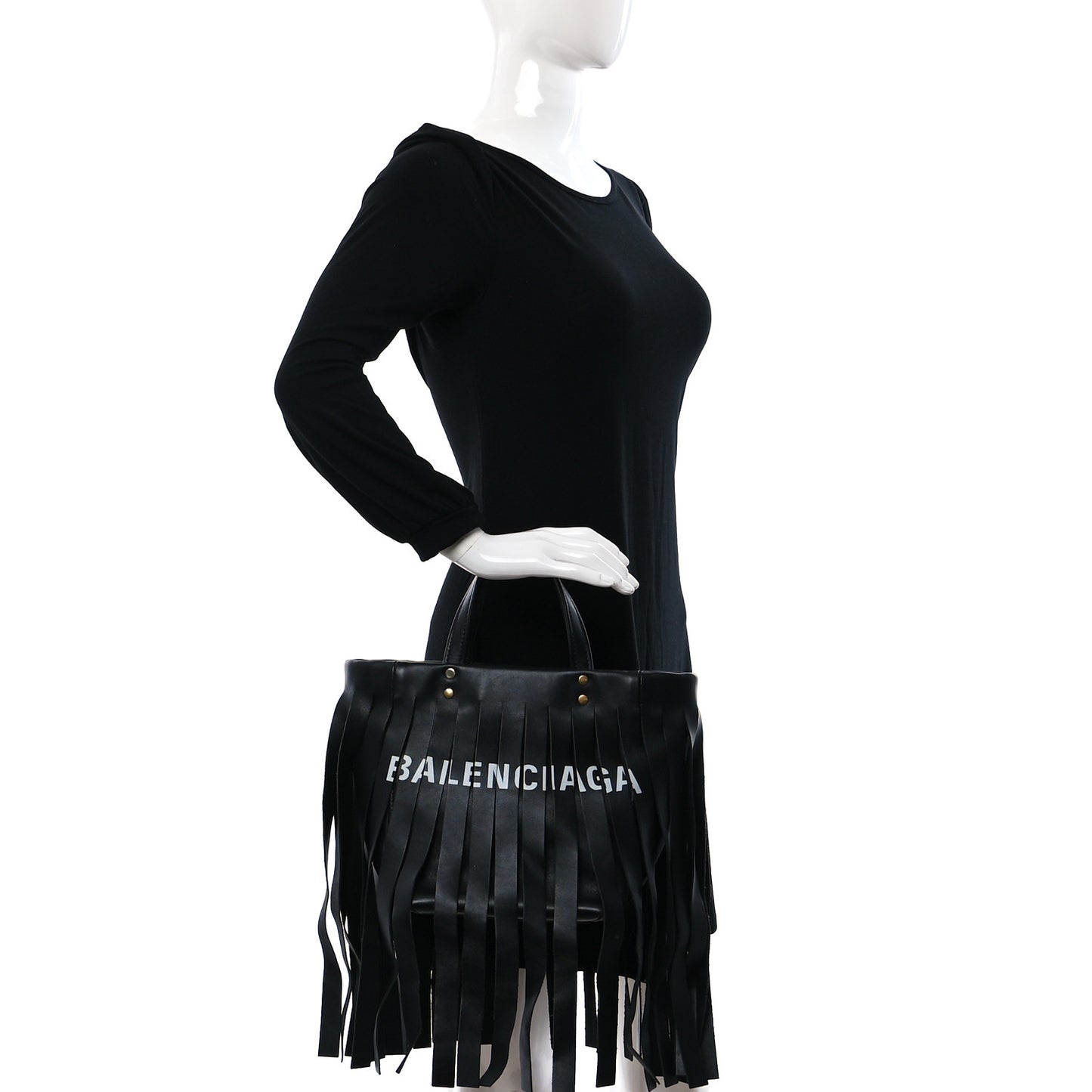 Balenciaga/ Bags/ Shoulder Bags /Balenciaga Calfskin XS Fringe Laundry Cabas Black