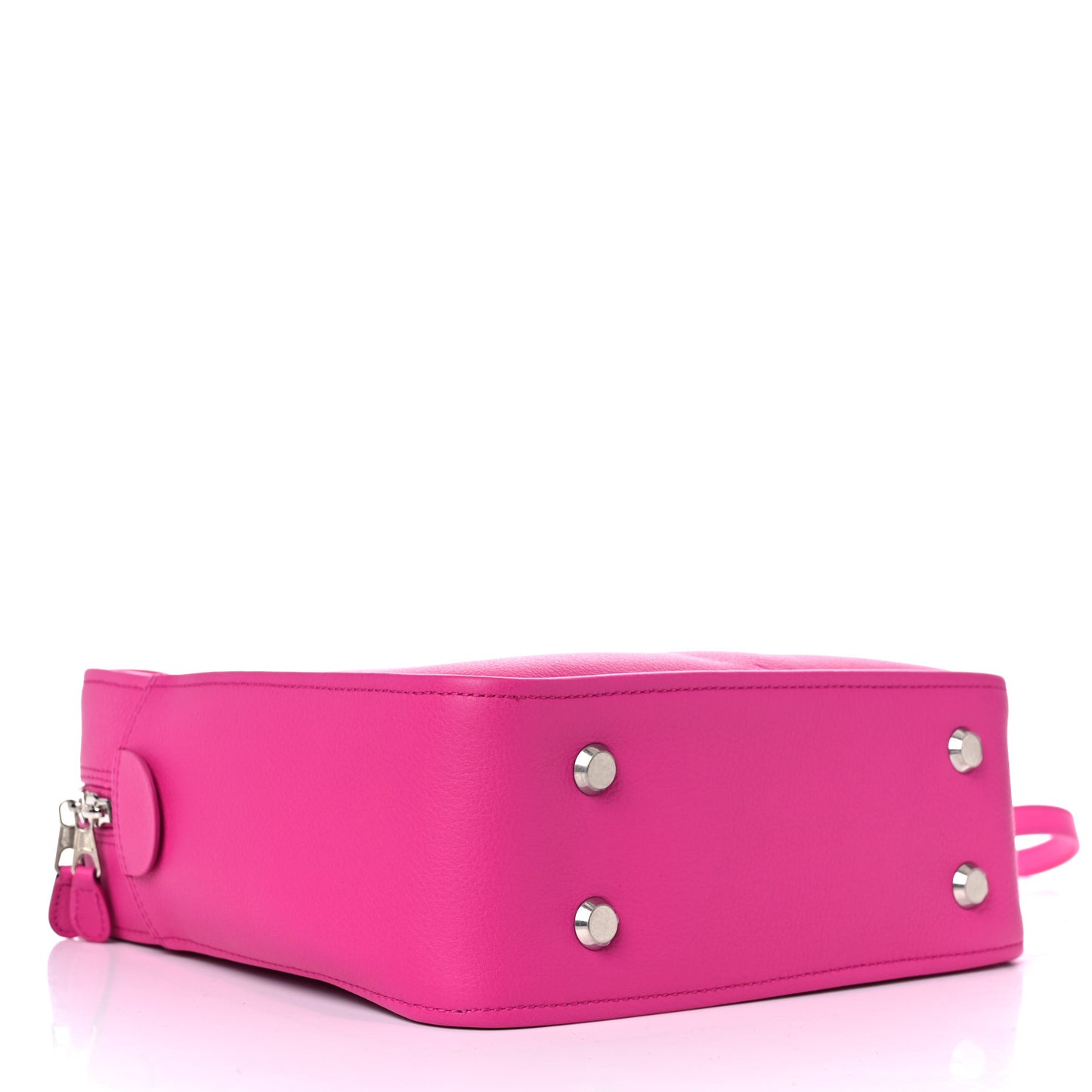 This is an authentic BALENCIAGA Calfskin Triangle Duffle XS in Acid Pink. This stylish bag is crafted of soft calfskin leather in neon pink. The crossbody bag features a Balenciaga black logo, leather top handles, and an optional shoulder strap with silver hardware. The top zipper opens to a black leather interior with card slots and a zipper pocket.Follow this item for alerts. Balenciaga is a registered trademark of Balenciaga. FASHIONPHILE is not affiliated with Balenciaga.