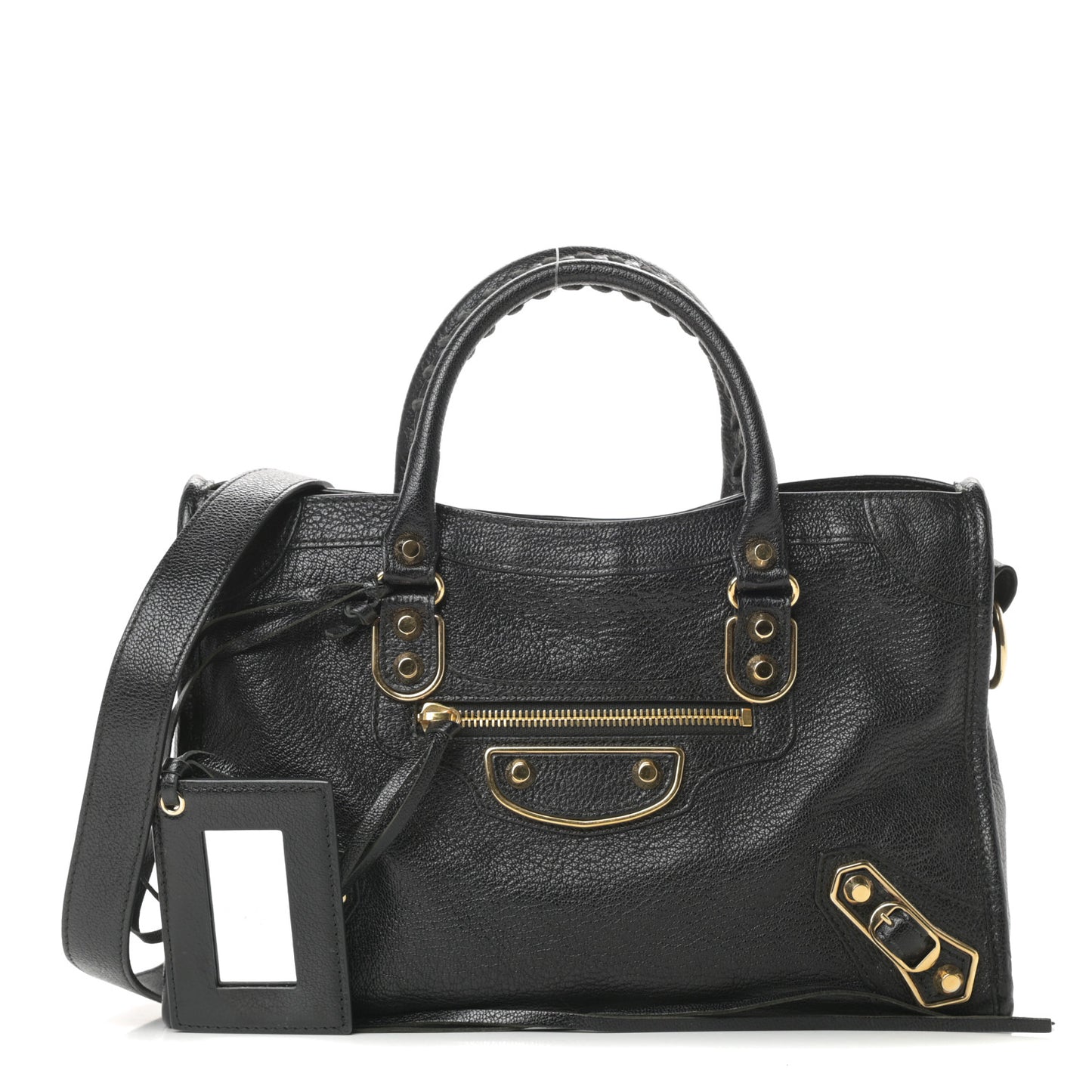 Balenciaga/ Bags/ Shoulder Bags /Balenciaga Chevre Gold Metallic Edge Hardware S City Black
