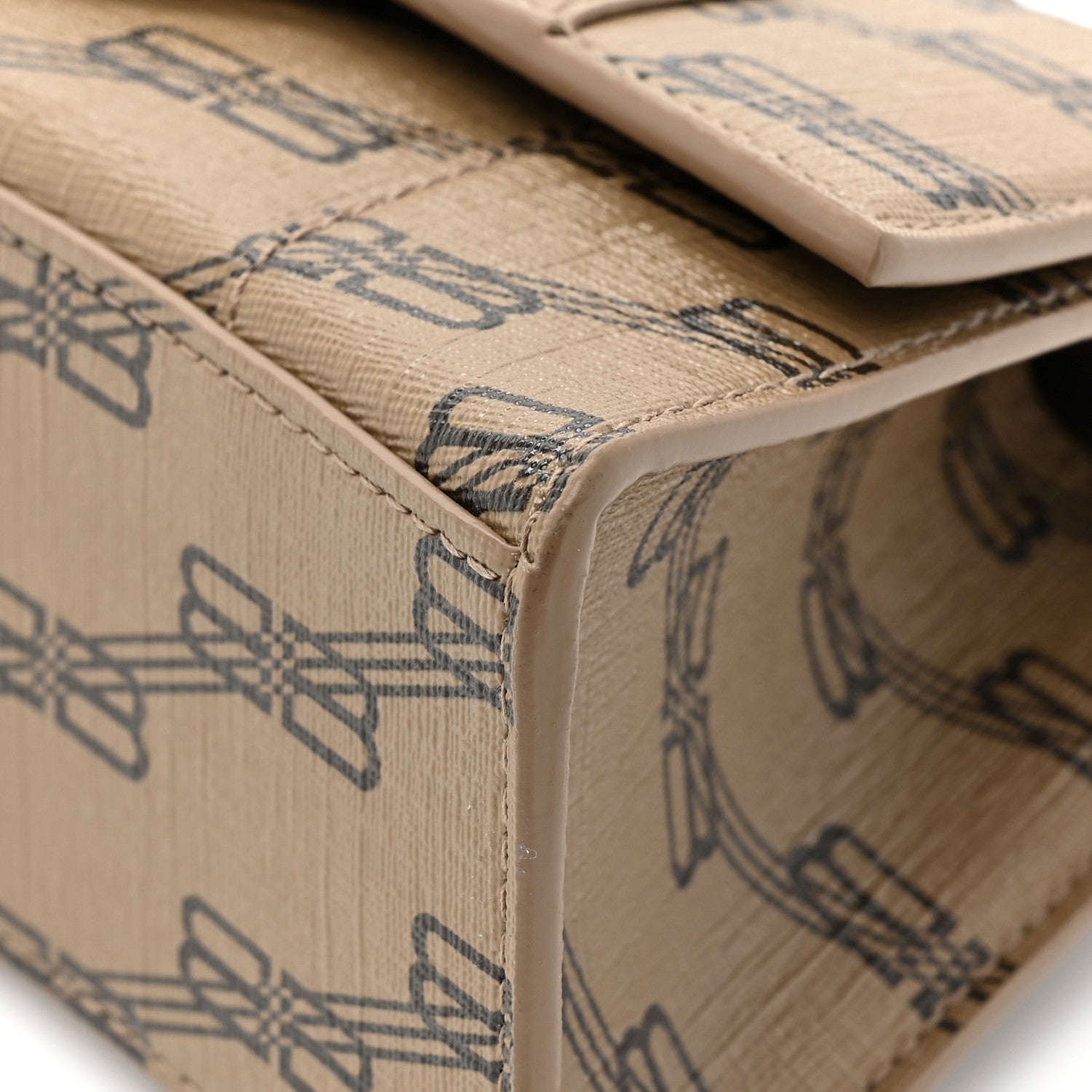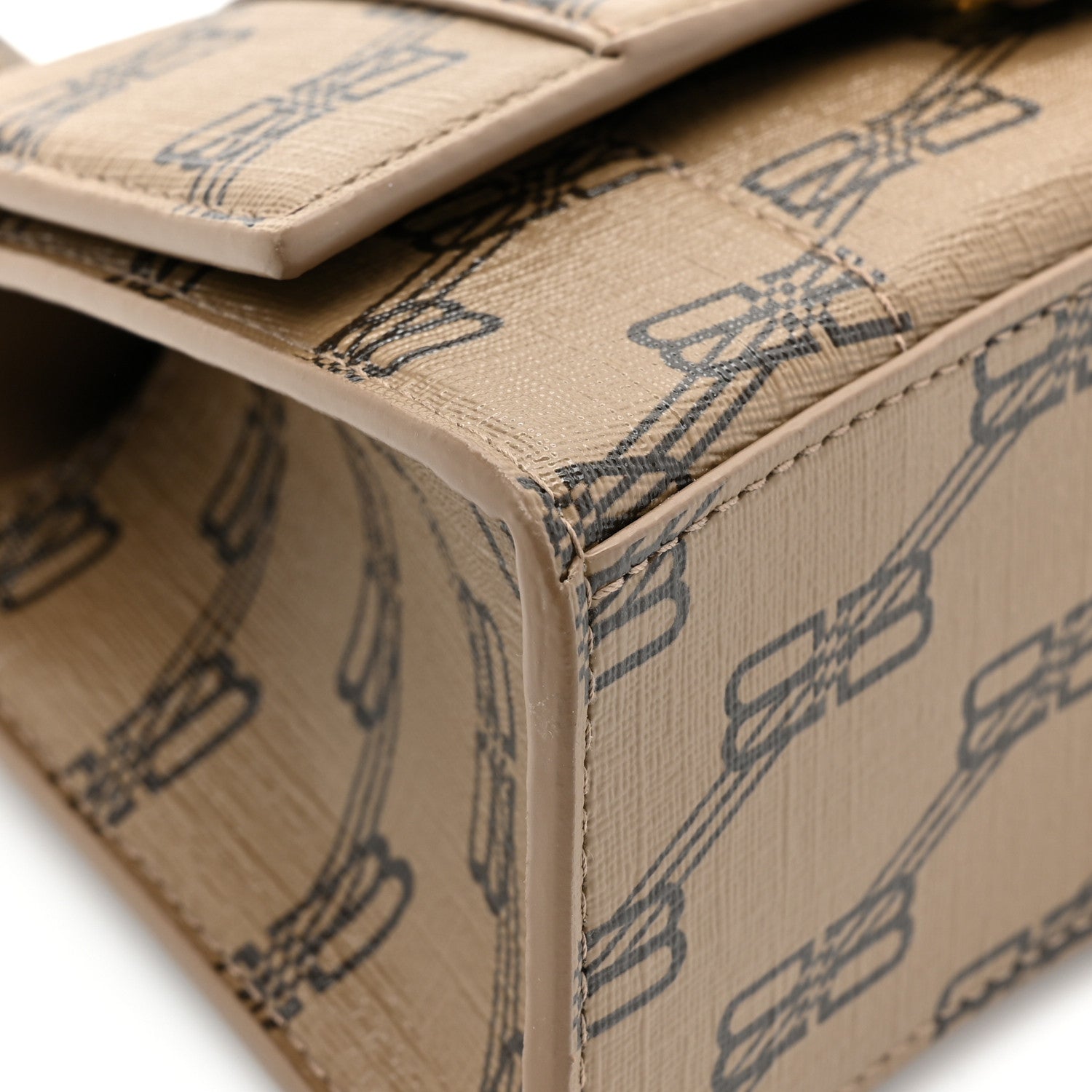 Balenciaga/ Bags/ Shoulder Bags /Balenciaga Coated Canvas BB Monogram Hourglass Top Handle Bag XS Beige Brown