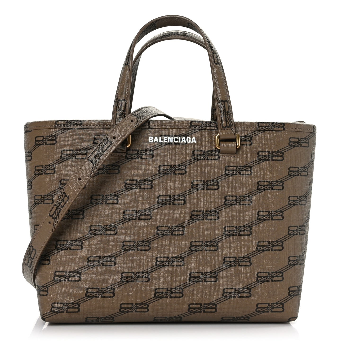 Balenciaga/ Bags/ Shoulder Bags /Balenciaga Coated Canvas BB Monogram Small Signature East West Shopper Bag Beige Brown