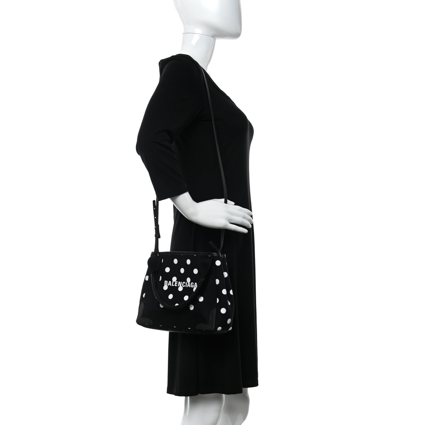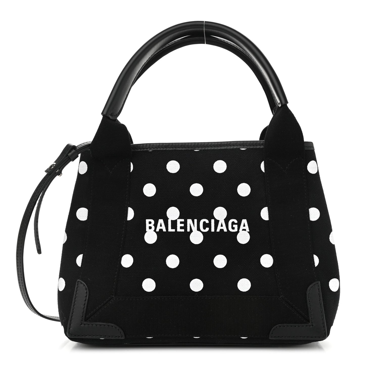 Balenciaga/ Bags/ Totes /Balenciaga Cotton Canvas Polka Dot Navy Cabas XS Black White