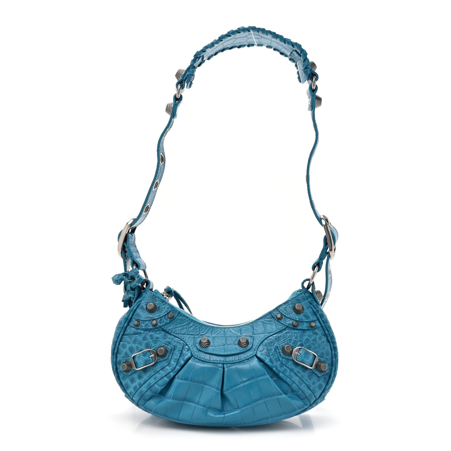 Balenciaga/ Bags/ Shoulder Bags /Balenciaga Extra Supple Calfskin Crocodile Embossed Le Cagole Shoulder Bag XS Cyan