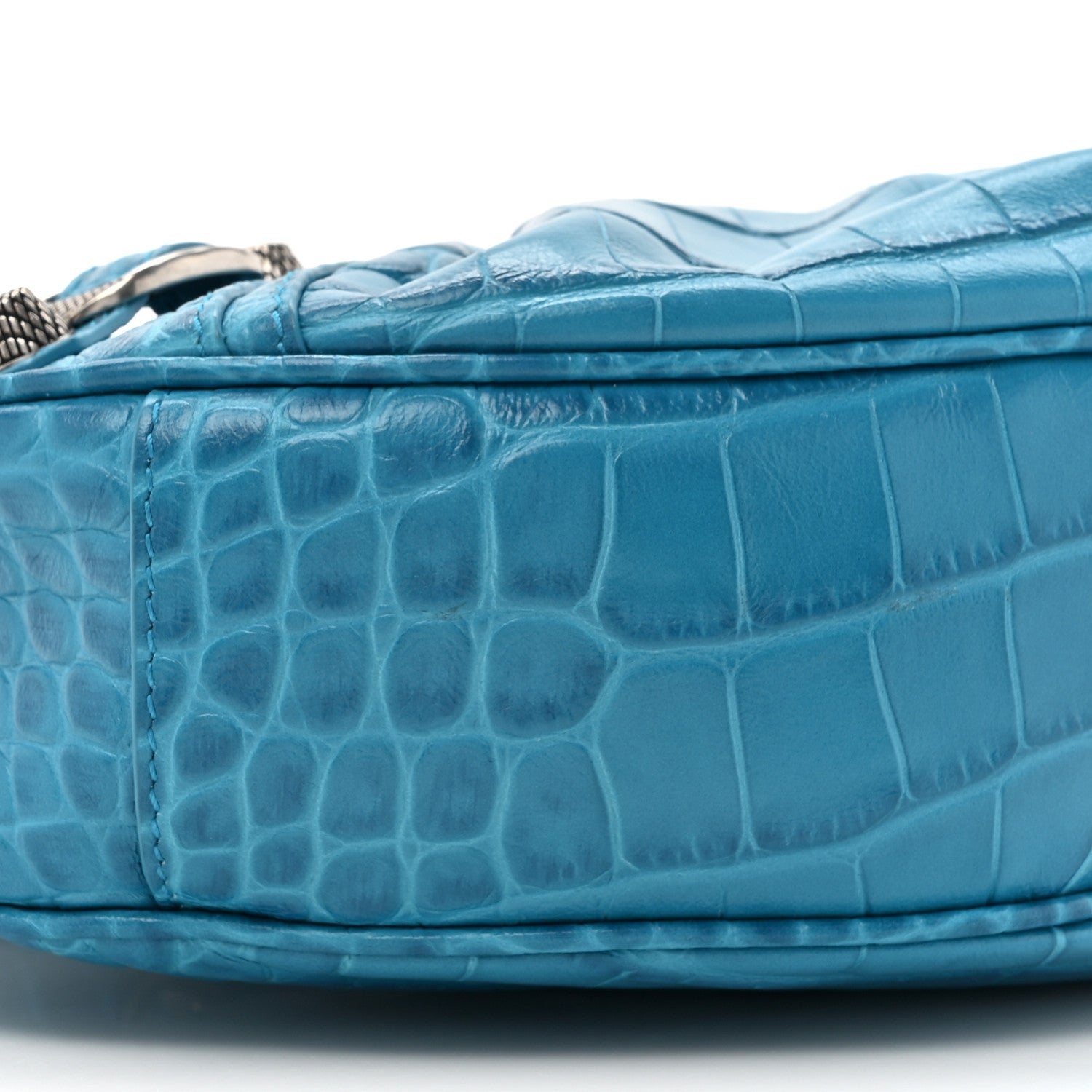 Extra Supple Calfskin Crocodile Embossed Le Cagole Shoulder Bag XS Cyan