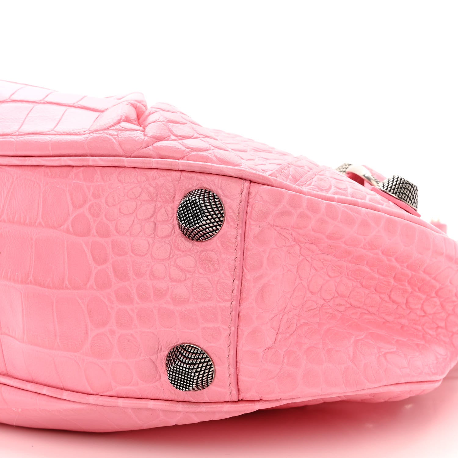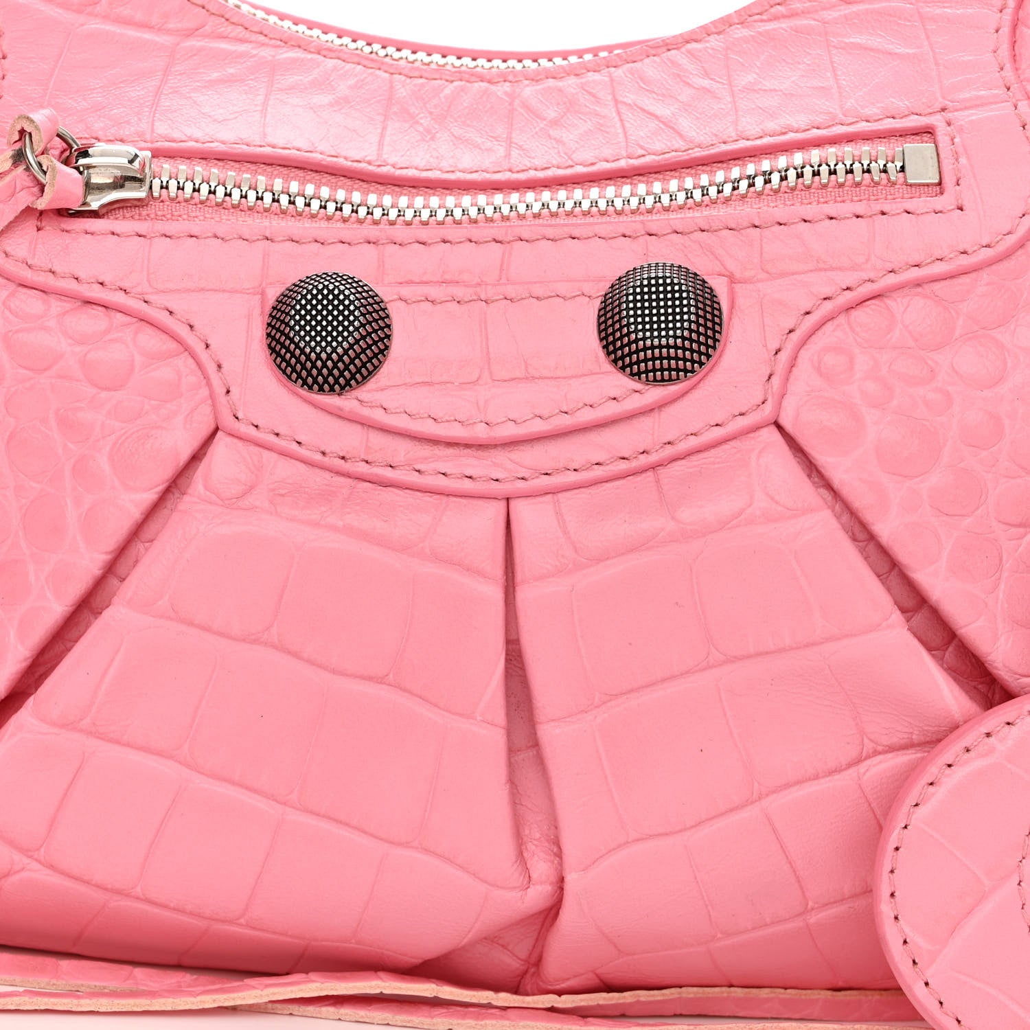 Balenciaga/ Bags/ Shoulder Bags /Balenciaga Extra Supple Calfskin Crocodile Embossed Small Le Cagole Shoulder Bag Sweet Pink