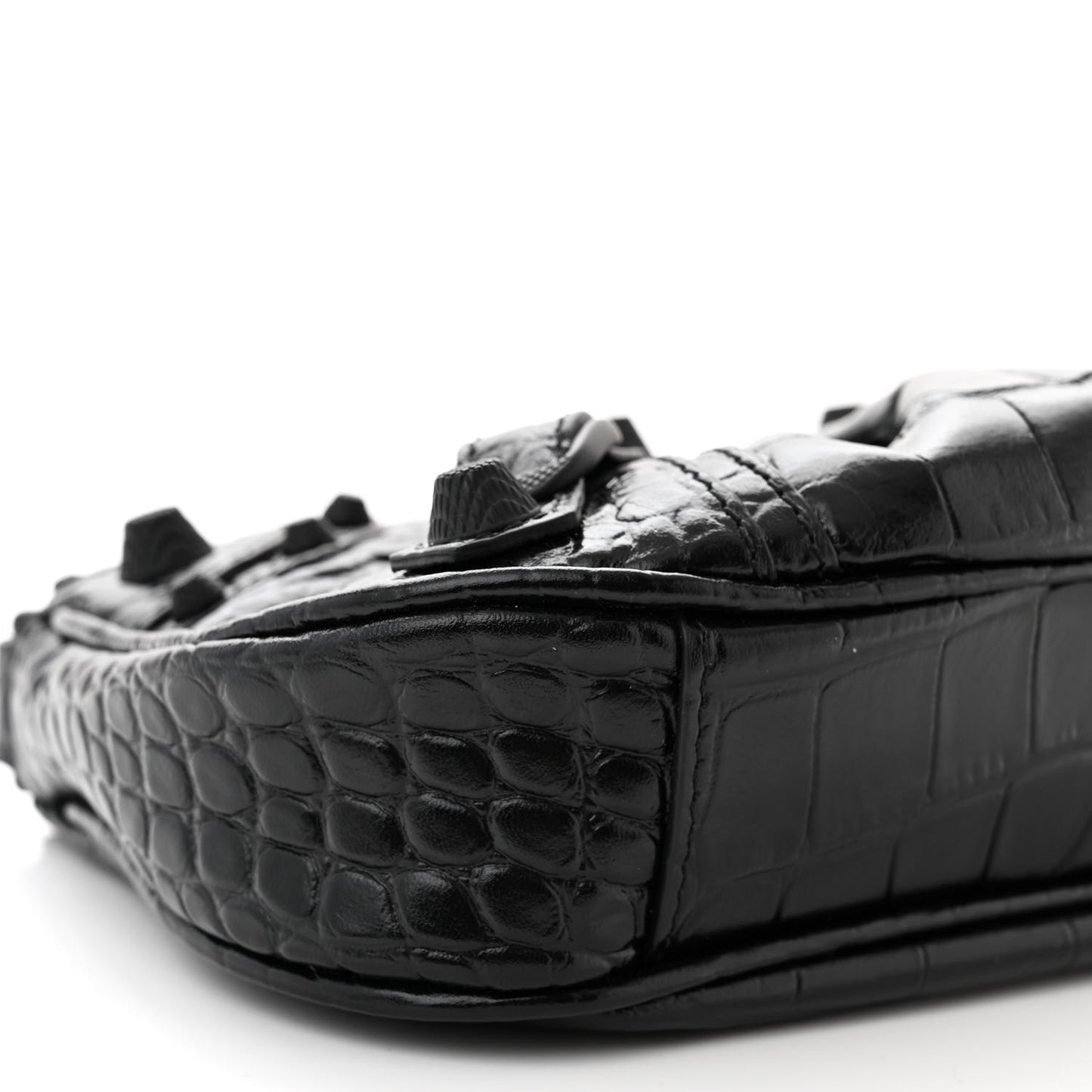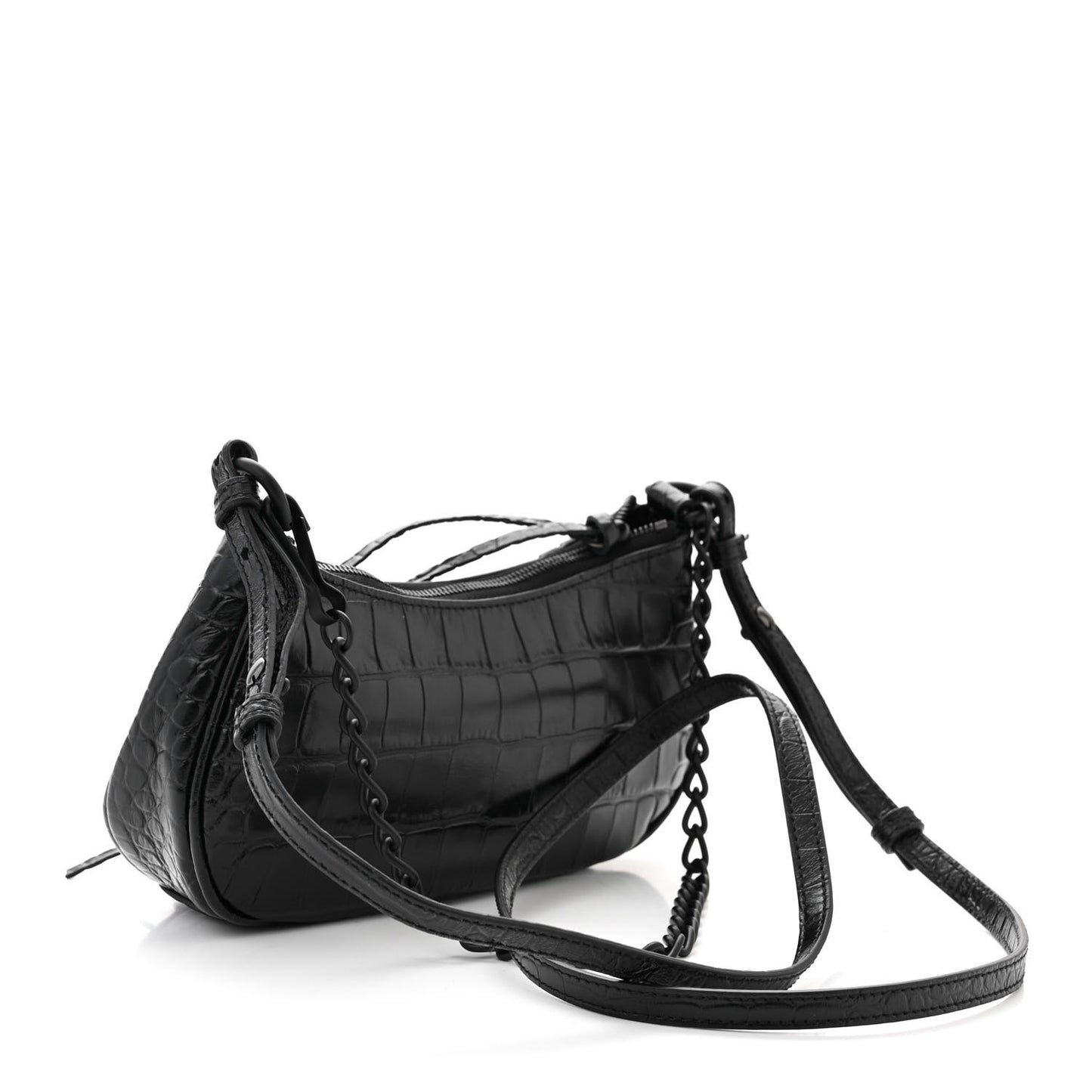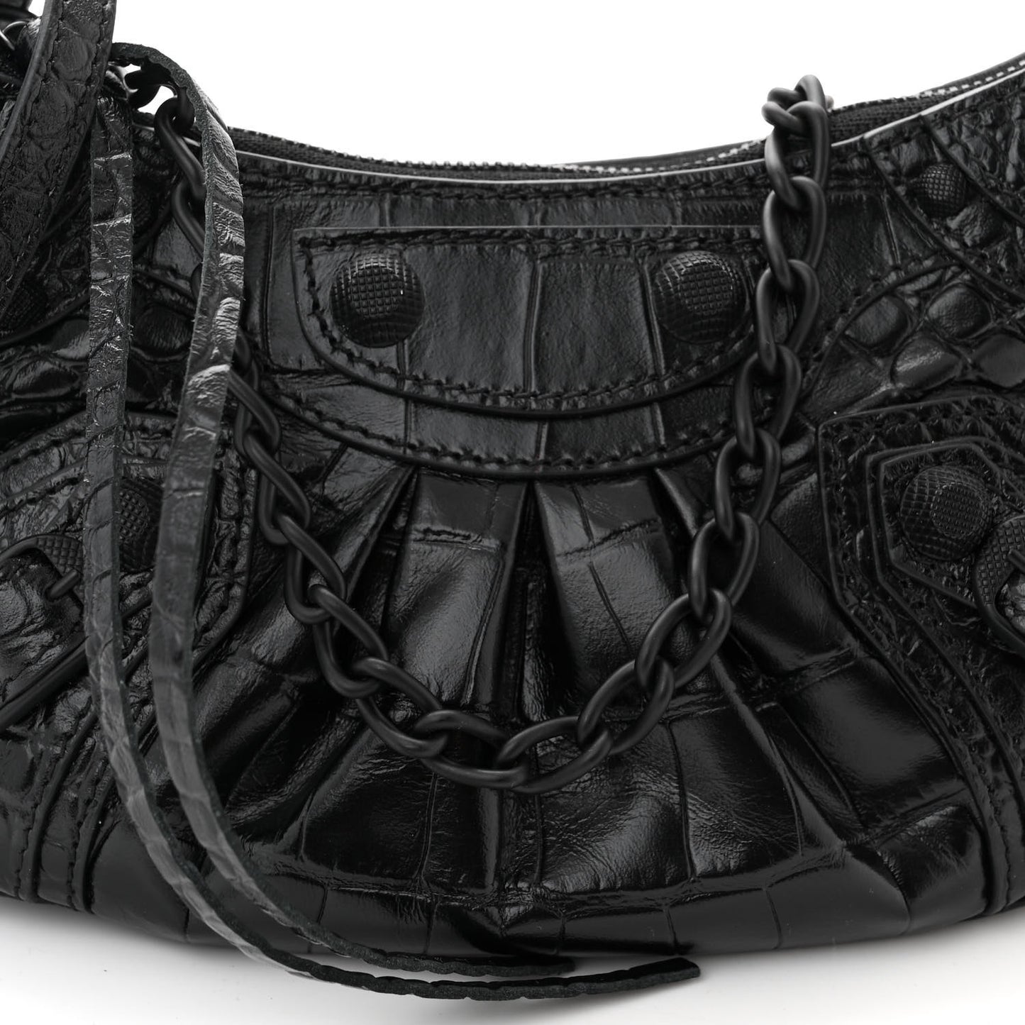 Balenciaga/ Bags/ Shoulder Bags /Balenciaga Extra Supple Calfskin Crystal Crocodile Embossed Le Cagole Mini Purse With Chain Black