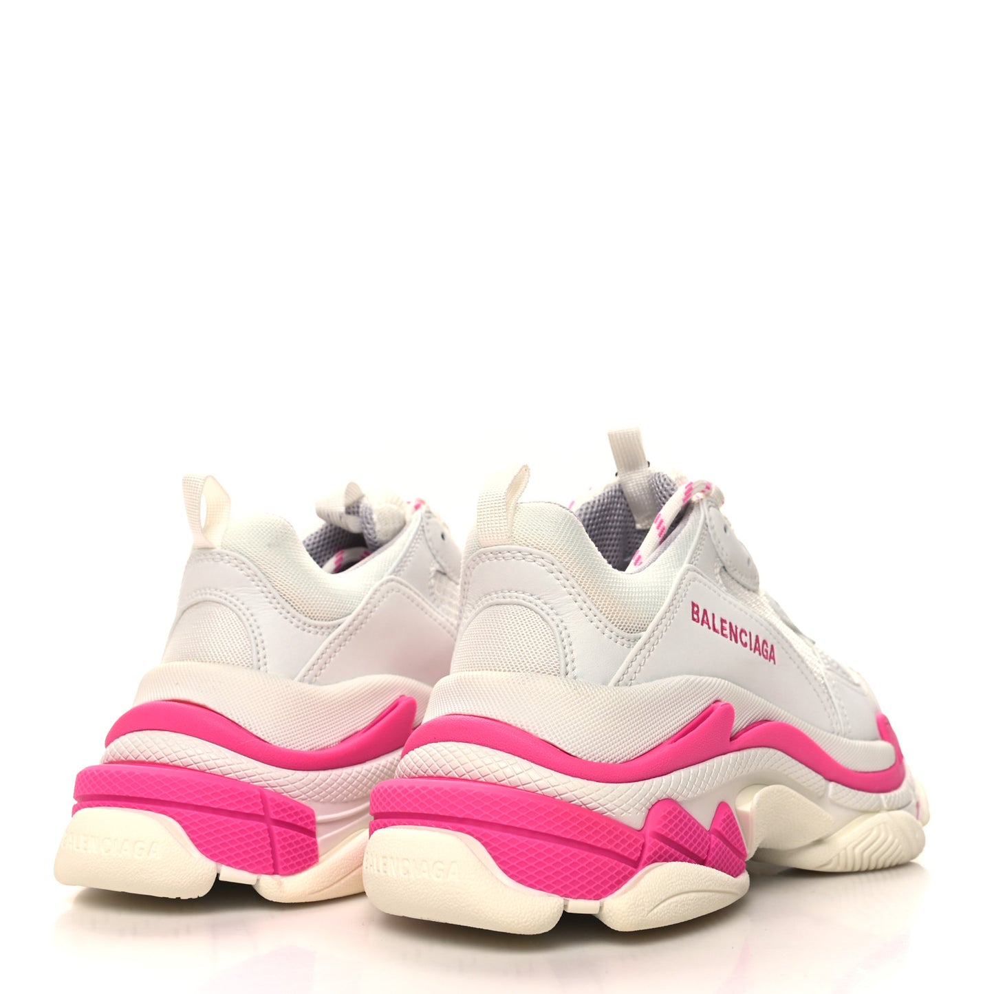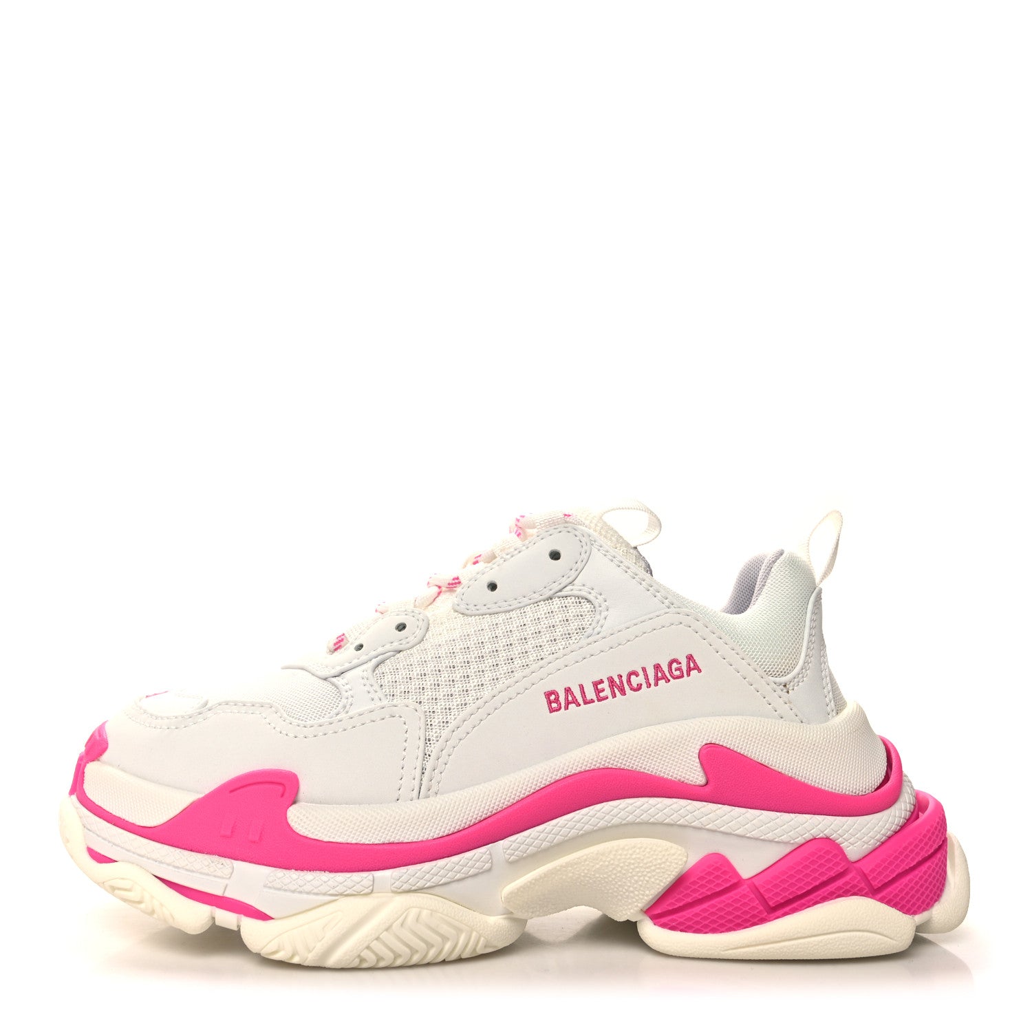 Balenciaga/ Accessories/ Shoes /Balenciaga Fabric Mesh Womens Triple S Sneakers 38 Fluo Pink White