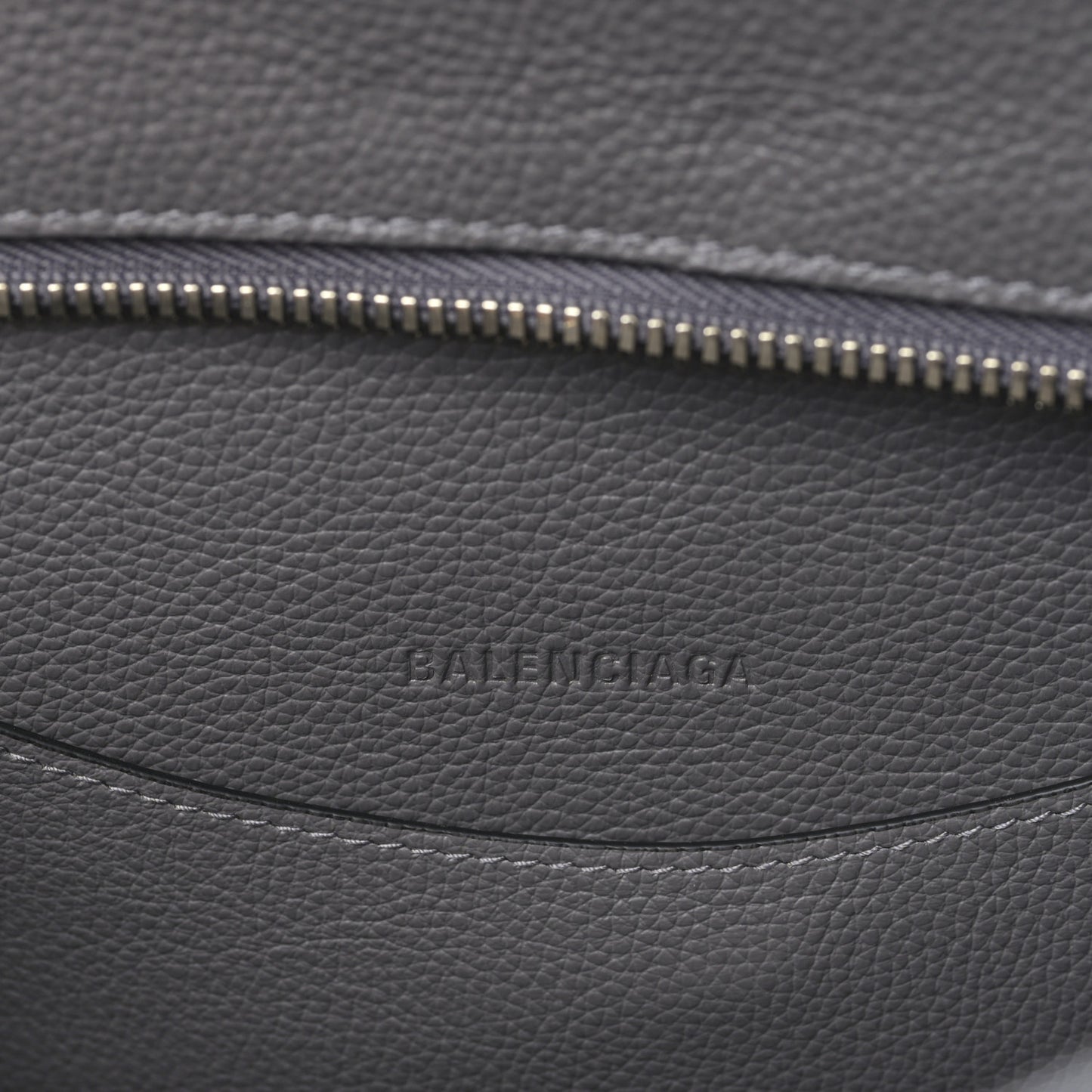 This is an authentic BALENCIAGA Grained Calfskin Neo Classic Silver Hardware Medium City in Dark Grey. This stylish handbag is beautifully crafted of grained calfskin leather in gray. It features top handles with a woven detail and an optional shoulder strap. This bag also features the signature Balenciaga look of a front zipper pocket with silver hardware including buckles and studs. The top zipper opens to a gray leather interior with a patch pocket.