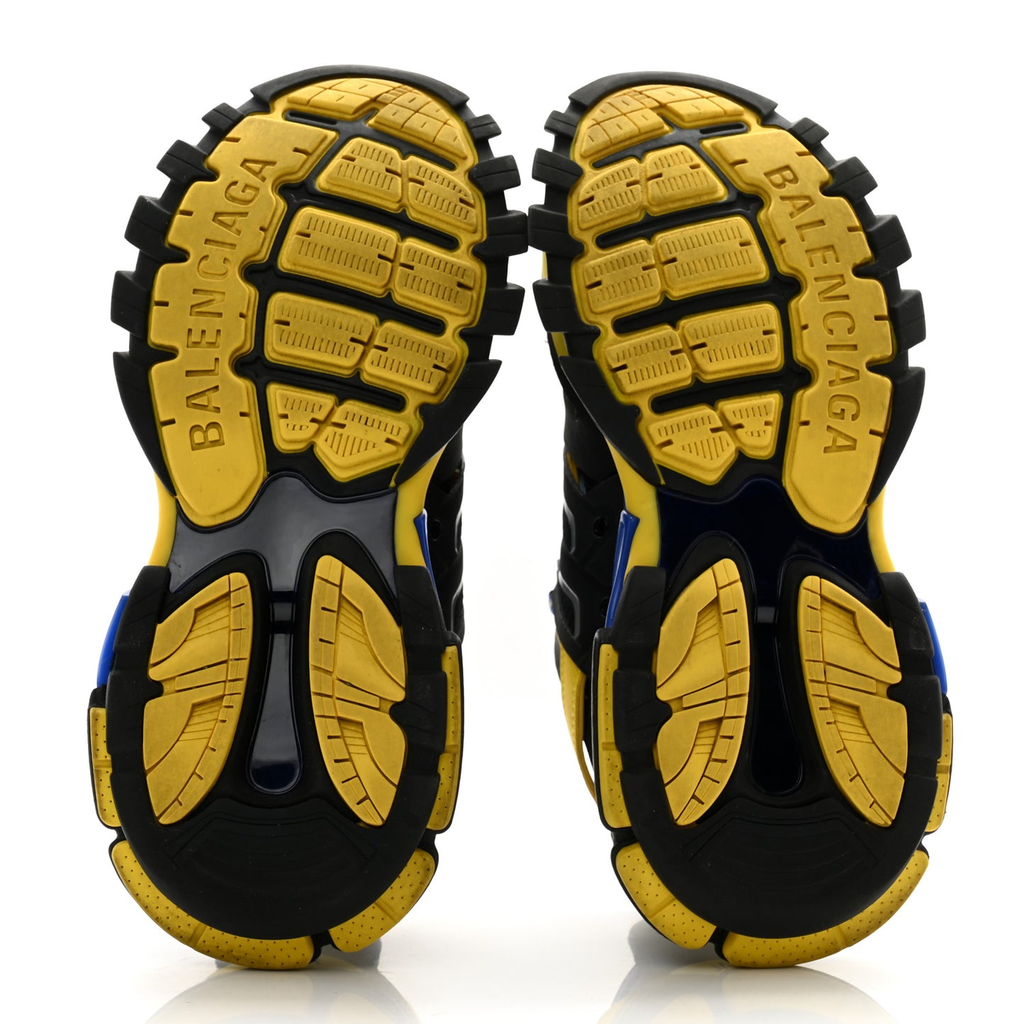 This is an authentic pair of BALENCIAGA Mesh Nylon Mens Track Sneakers in size 42 in Black, Yellow and Blue. These sneakers feature a nylon mesh upper with leather and rubber trim on the exterior, and multicolor rubber soles.Follow this item for alerts. Balenciaga is a registered trademark of Balenciaga. FASHIONPHILE is not affiliated with Balenciaga.