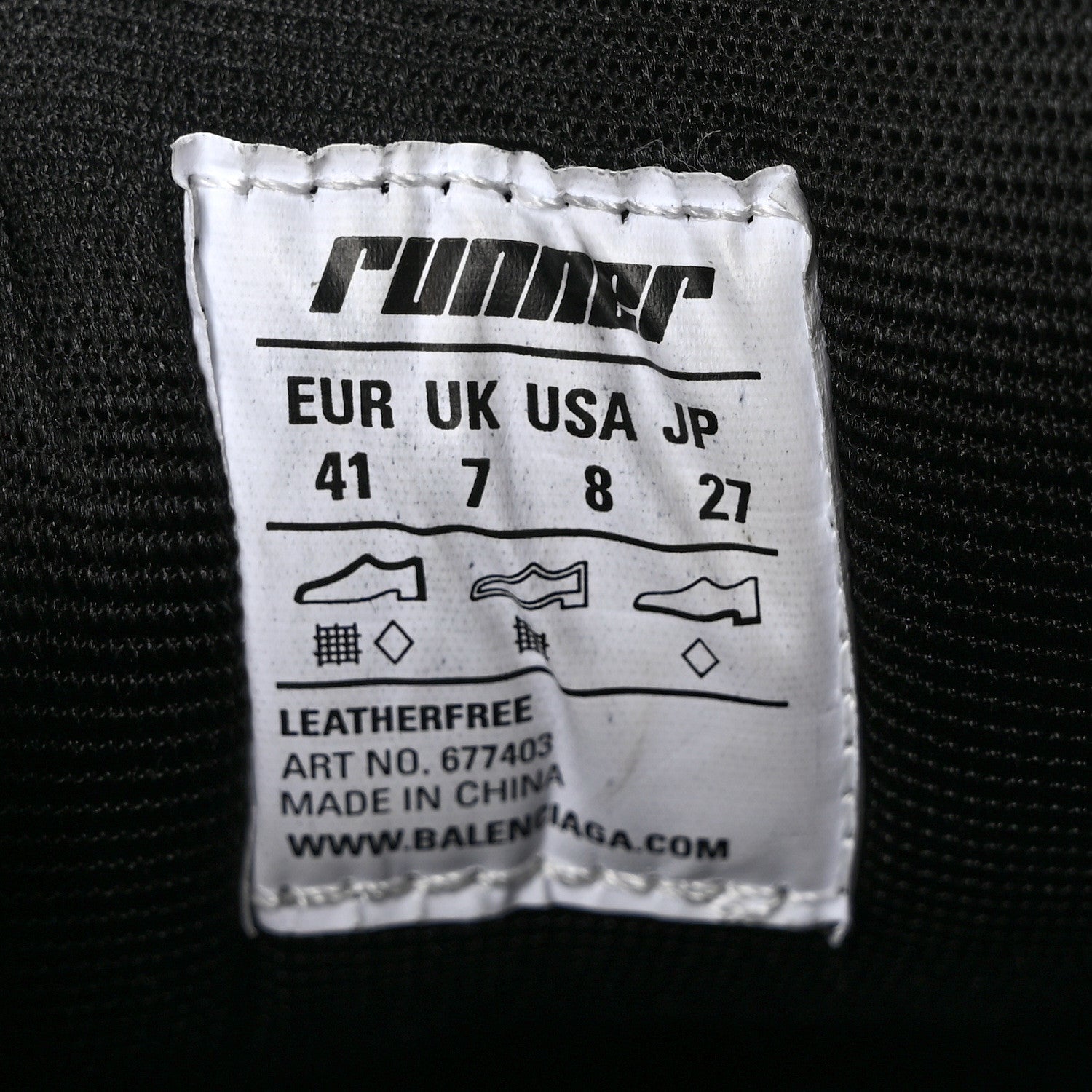 This is an authentic pair of BALENCIAGA Mesh Rubber Distressed Mens Runner Sneakers size 41 in Black and Grey. These distressed sneakers feature a nylon mesh upper with leather trim. They feature the Balenciaga logo at the back of the heel, grey laces, and the size printed at the toes.Follow this item for alerts. Balenciaga is a registered trademark of Balenciaga. FASHIONPHILE is not affiliated with Balenciaga.