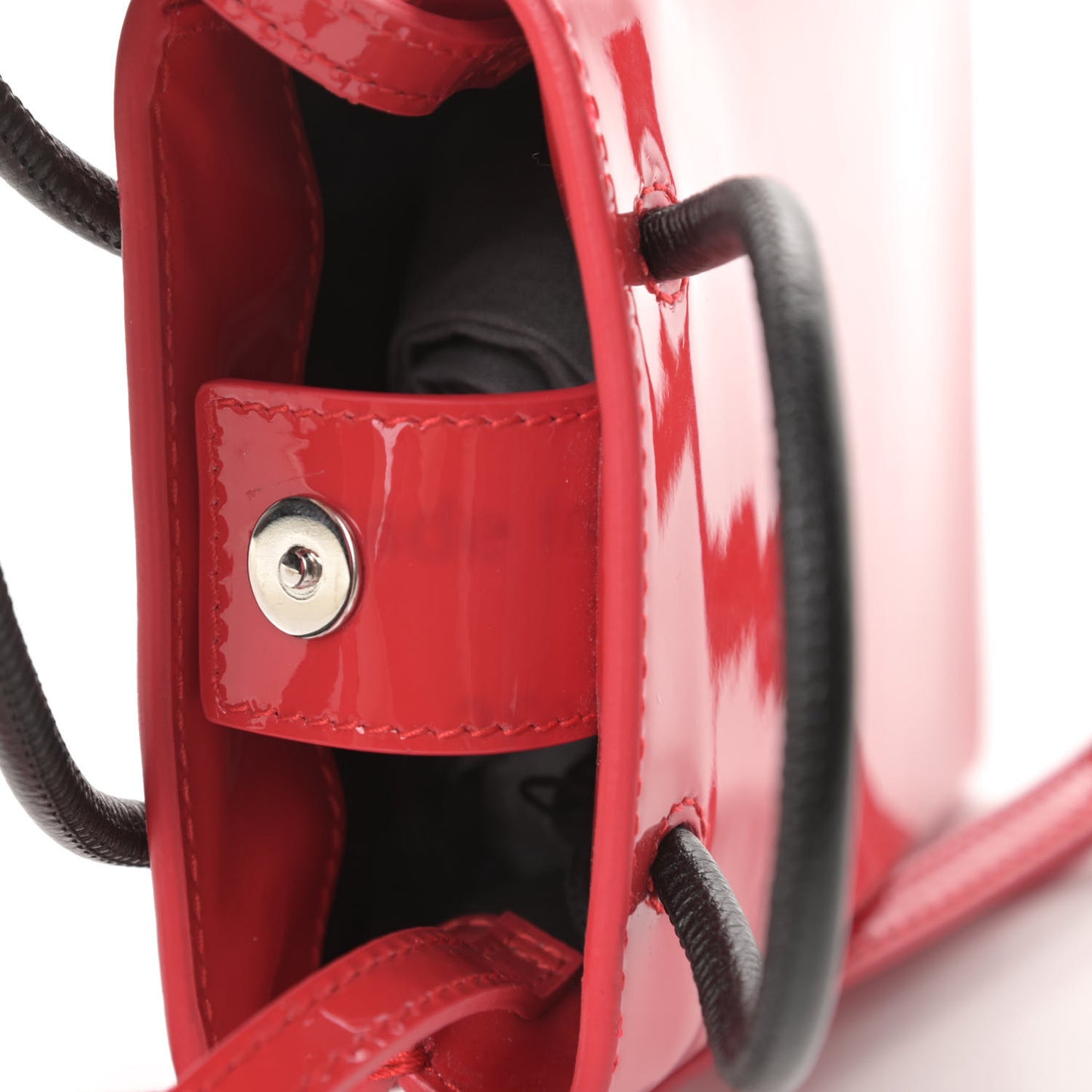 Patent Calfskin Logo Shopping Phone Holder Bag Bright Red