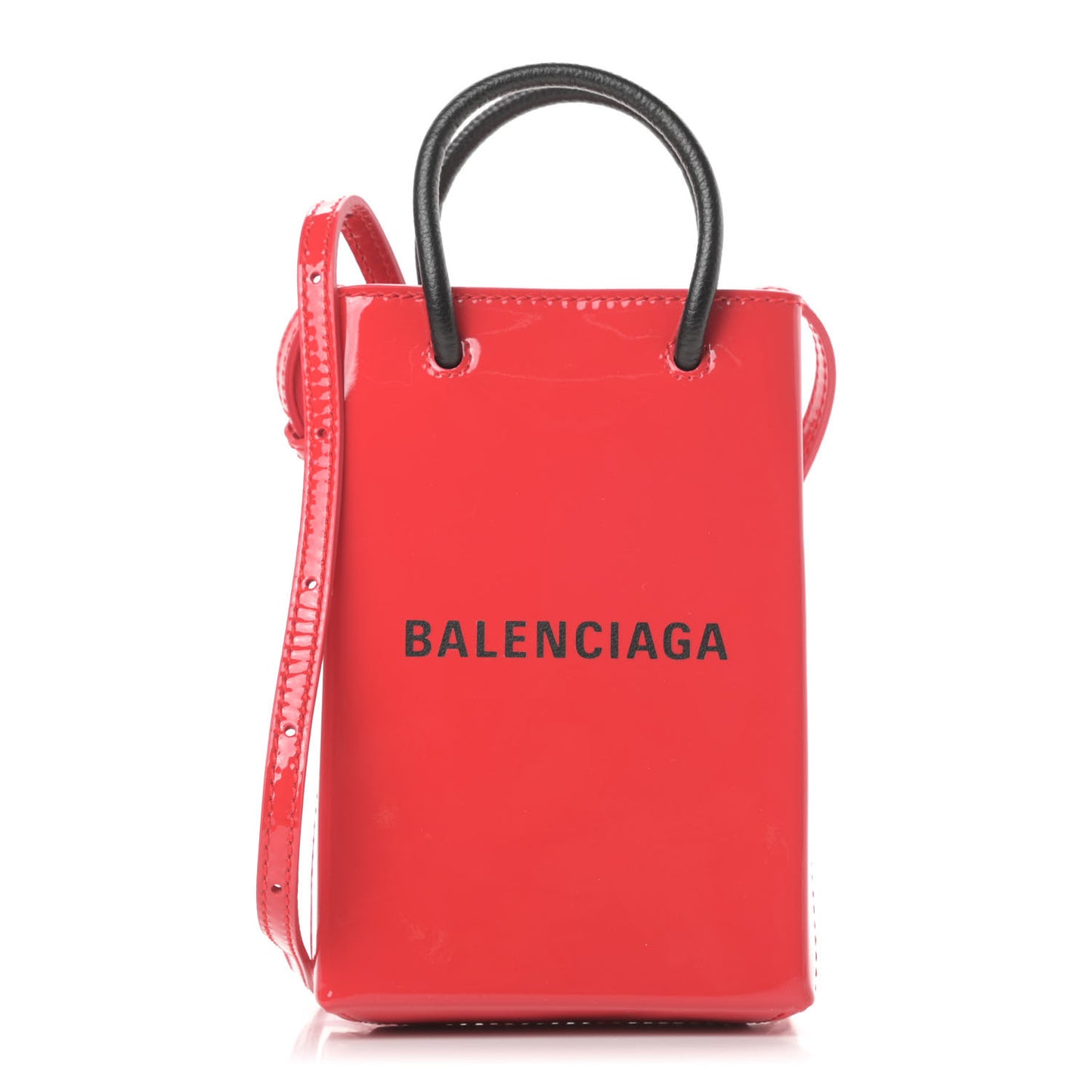 Balenciaga/ Accessories/ Shoulder Bags /Balenciaga Patent Calfskin Logo Shopping Phone Holder Bag Bright Red