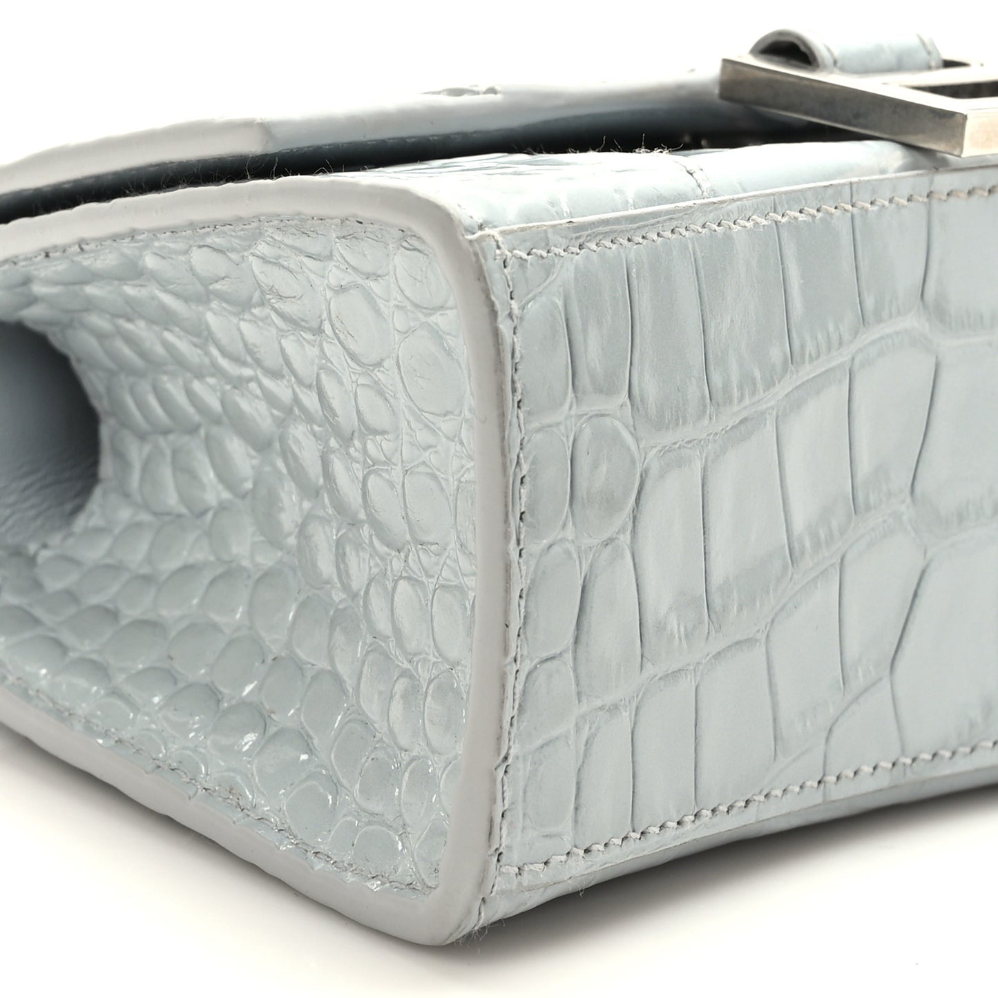 Balenciaga/ Bags/ Handbags /Balenciaga Shiny Calfskin Crocodile Embossed Hourglass Top Handle Bag XS Ash Blue