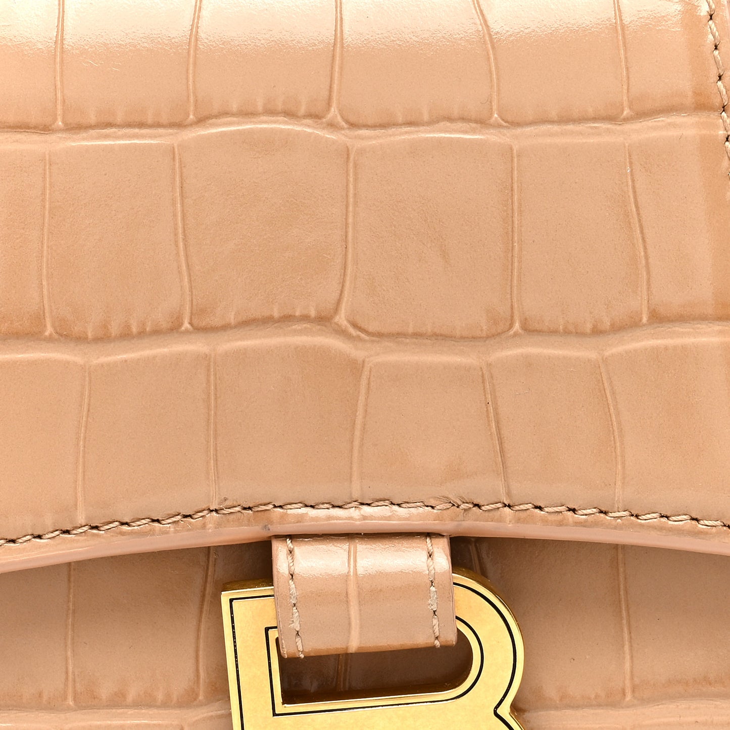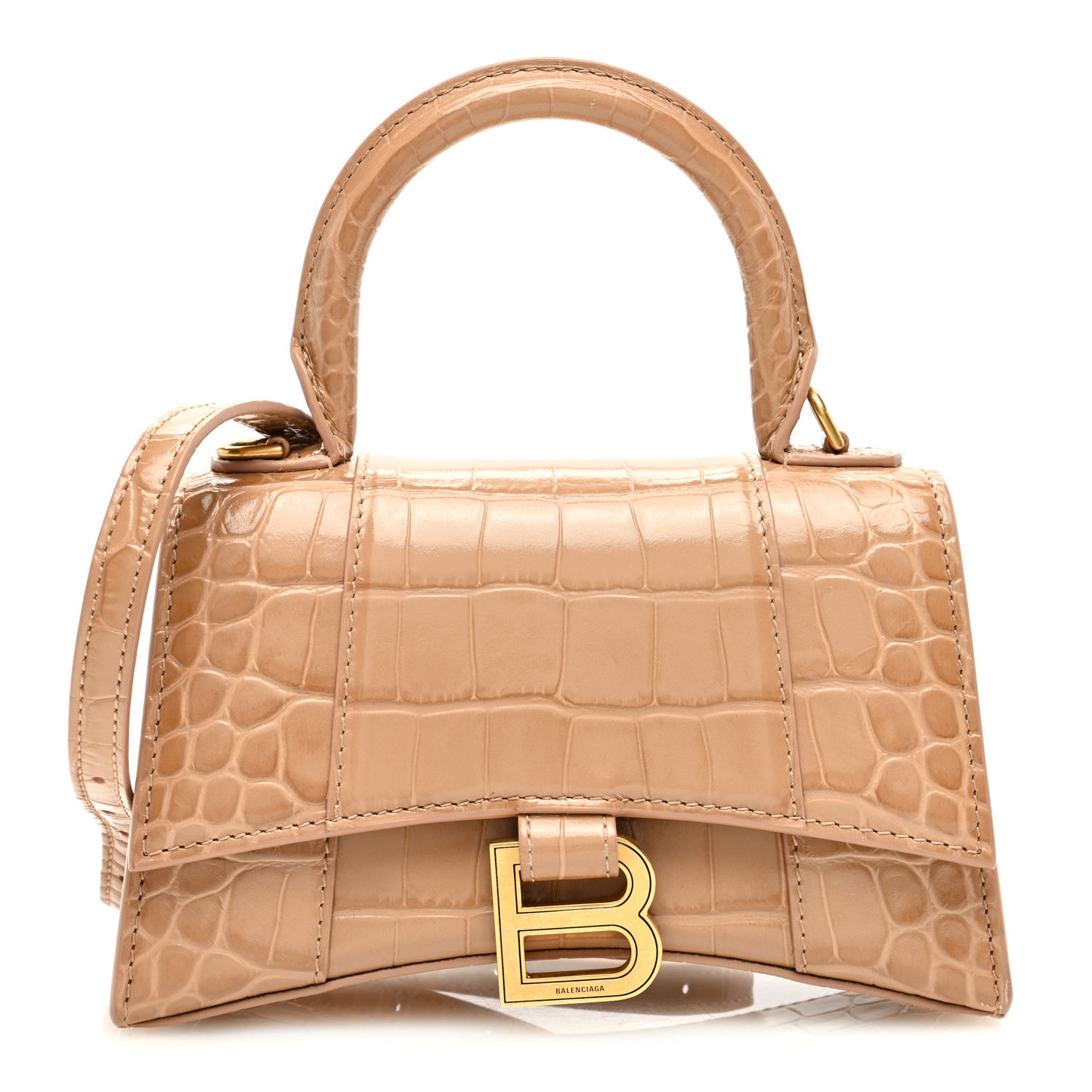 Balenciaga/ Bags/ Shoulder Bags /Balenciaga Shiny Calfskin Crocodile Embossed Hourglass Top Handle Bag XS Nude Beige