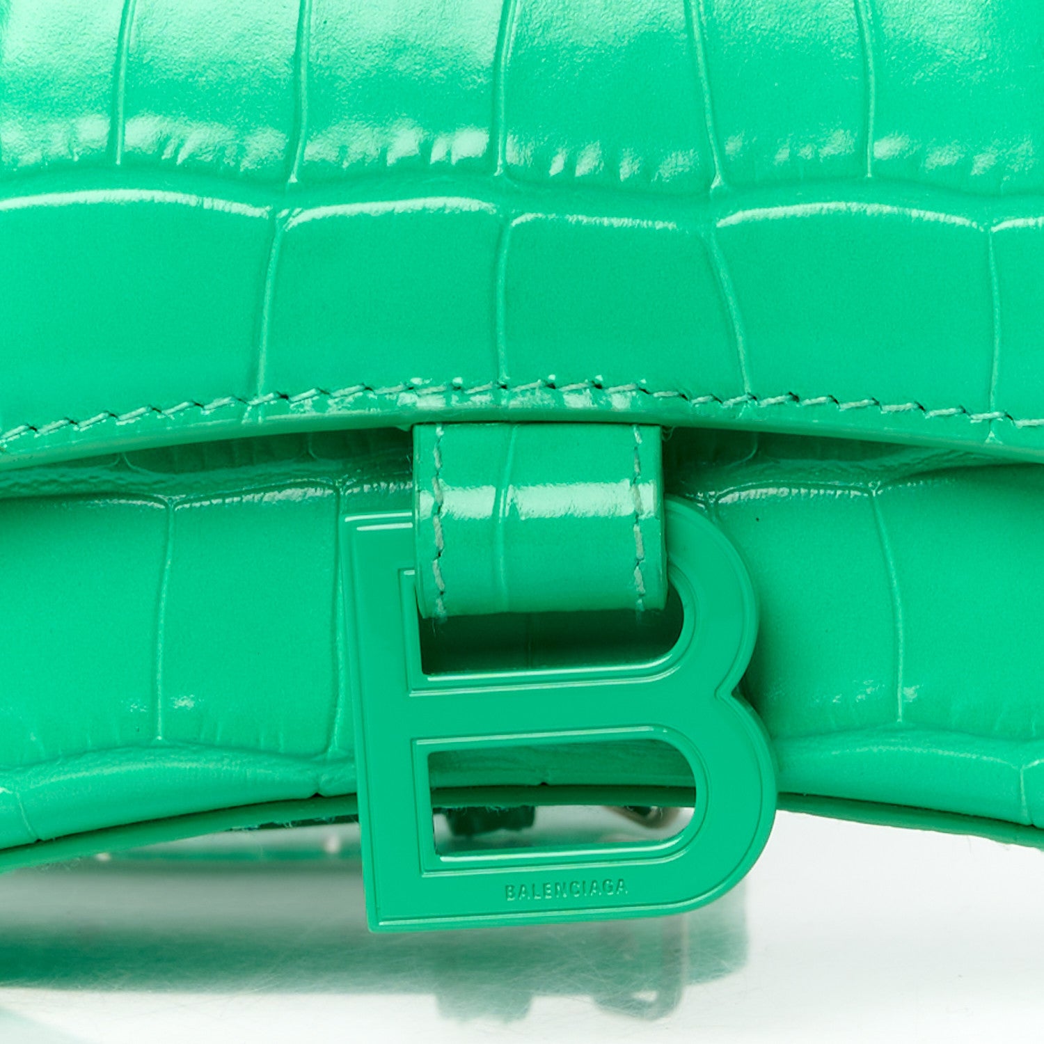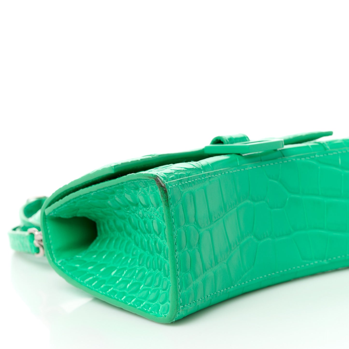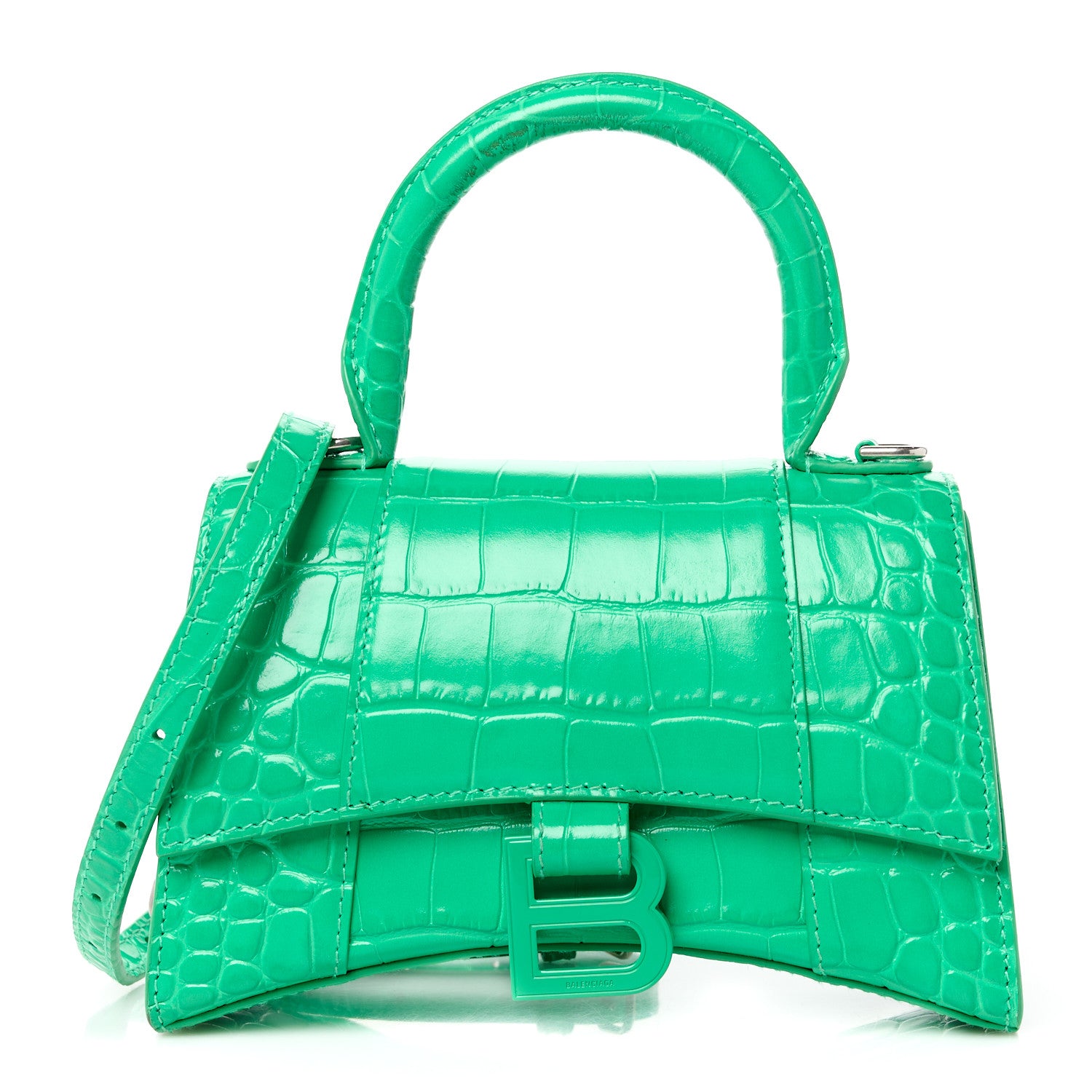 Balenciaga/ Bags/ Shoulder Bags /Balenciaga Shiny Calfskin Crocodile Embossed Hourglass Top Handle Bag XS Vivid Green