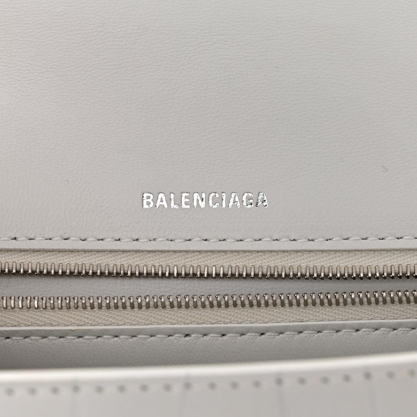 Balenciaga/ Bags/ Crossbody /Balenciaga Shiny Calfskin Crocodile Embossed Small Hourglass Sling Shoulder Bag White
