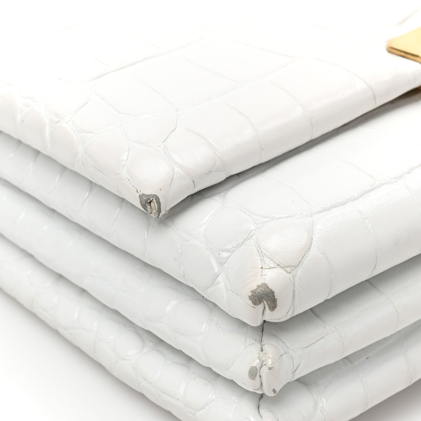 Balenciaga/ Bags/ Shoulder Bags /Balenciaga Shiny Extra Supple Calfskin Crocodile Embossed Small Triplet Bag Optic White