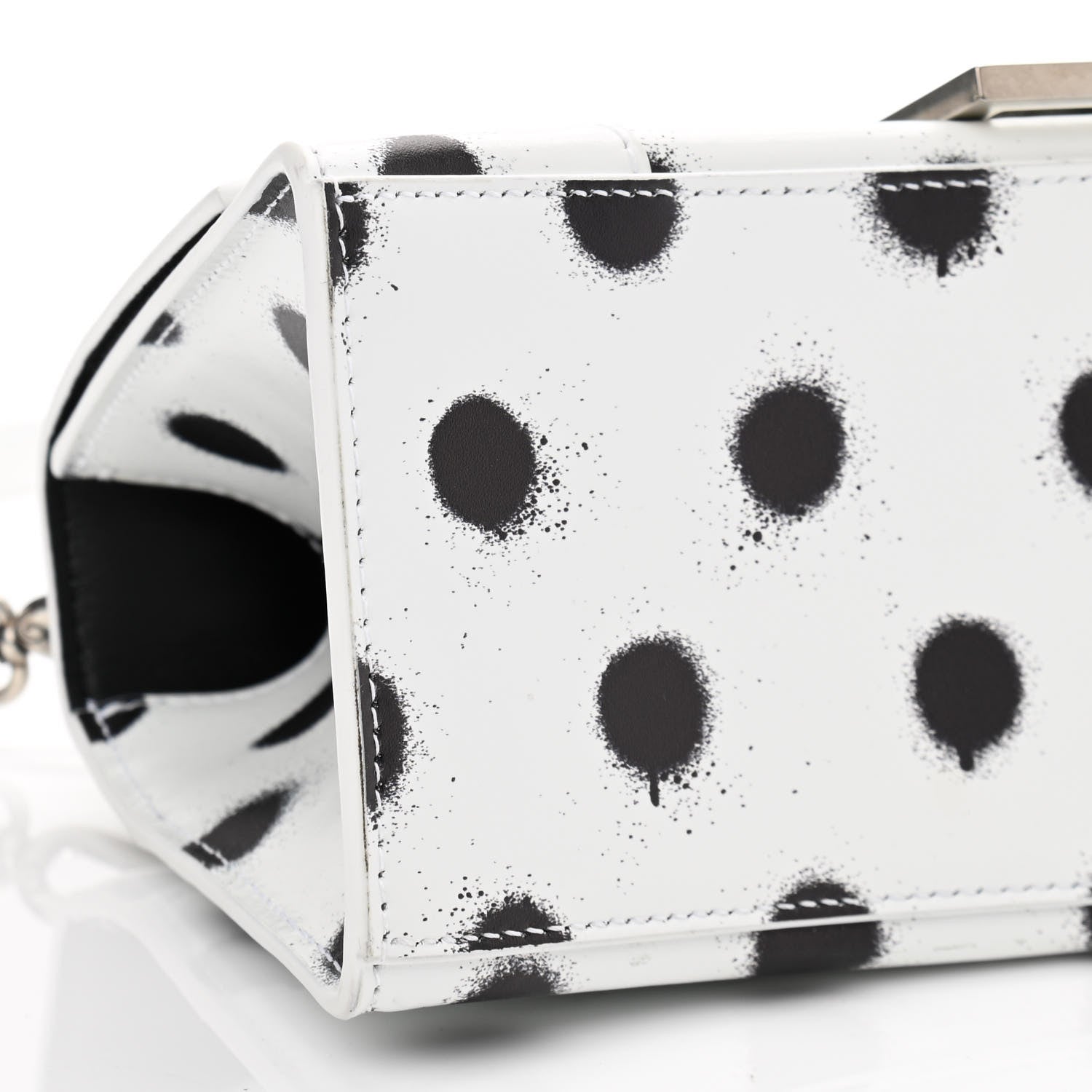 Smooth Calfskin Spray Polka Dot Small Hourglass Top Handle Bag White Black