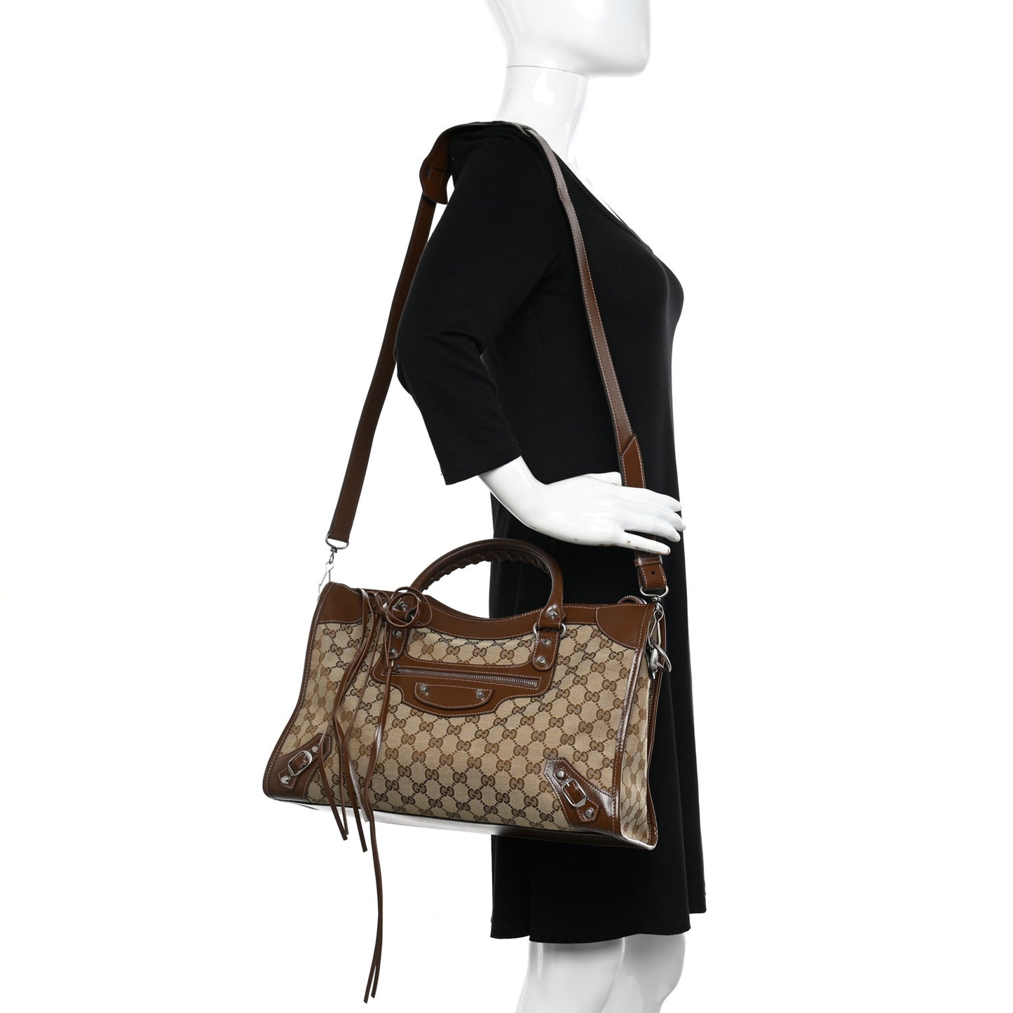 Balenciaga/ Bags/ Totes /Balenciaga X GUCCI GG Monogram Azalea Calfskin Neo Classic Silver Hardware Medium City Beige Ebony Brown Sugar
