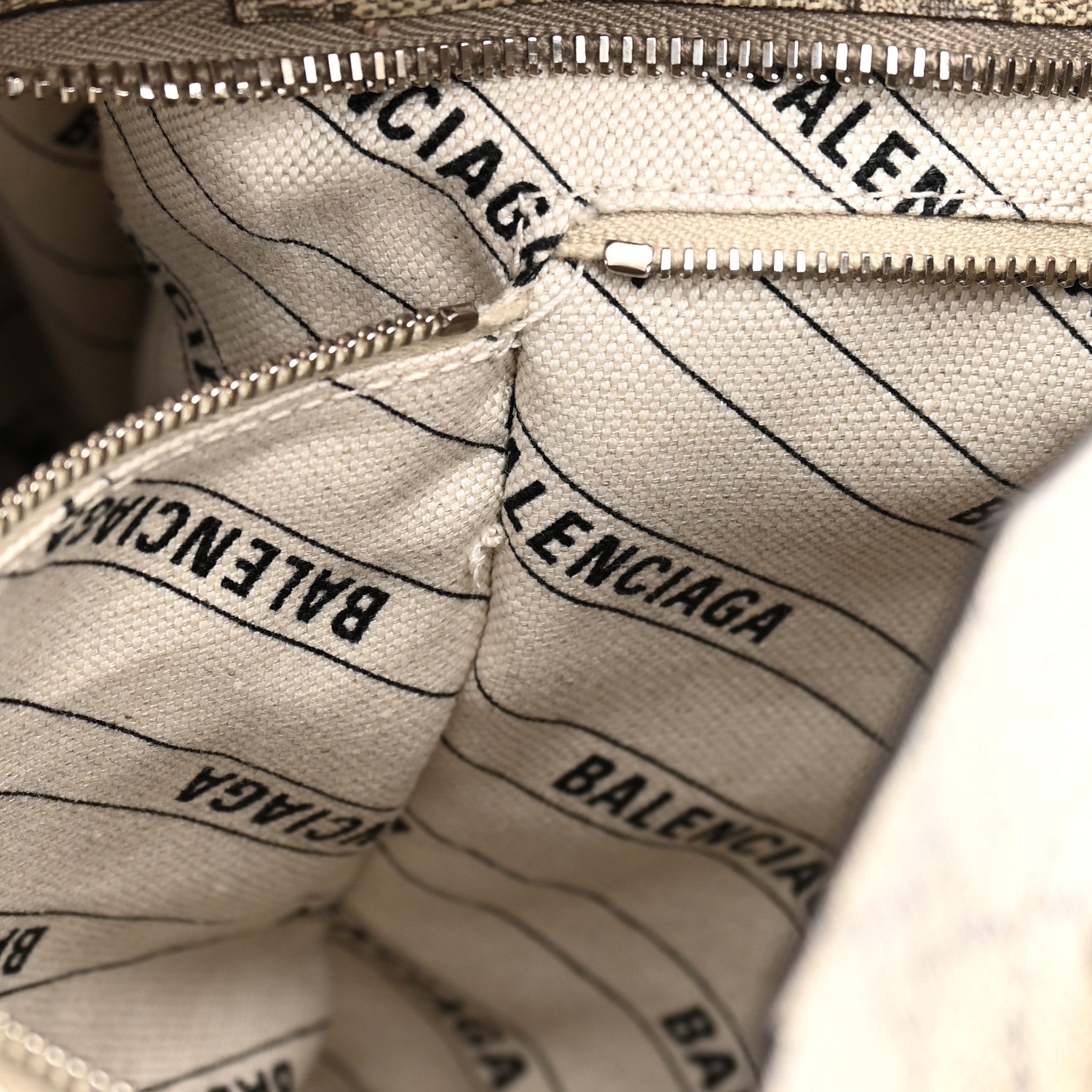 This is an authentic BALENCIAGA X GUCCI GG Supreme Monogram Neo Classic Silver Hardware City in Beige and Ebony. This stylish handbag is beautifully crafted with the Gucci monogram on coated canvas. It features top handles and an optional shoulder strap. This bag also features silver hardware and a zip pocket at the front for the removable mirror. The top zippers open to a beige Balenciaga monogrammed canvas interior with zipper and patch pockets.Follow this item for alerts. Balenciaga is a registered trademark of Balenciaga. FASHIONPHILE is not affiliated with Balenciaga.