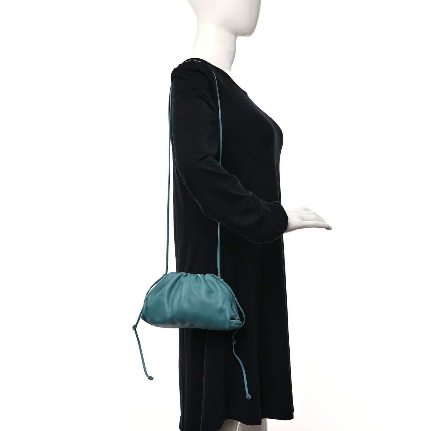 This is an authentic BOTTEGA VENETA Butter Calfskin The Mini Pouch in Linoleum. This ultra-popular crossbody bag is crafted of supple calfskin leather in blue and features a ruched leather magnetic frame top that opens to a matching leather interior. A long thin crossbody strap is accented with signature knotted ends.Follow this item for alerts. Bottega Veneta is a registered trademark of Bottega Veneta. FASHIONPHILE is not affiliated with Bottega Veneta.