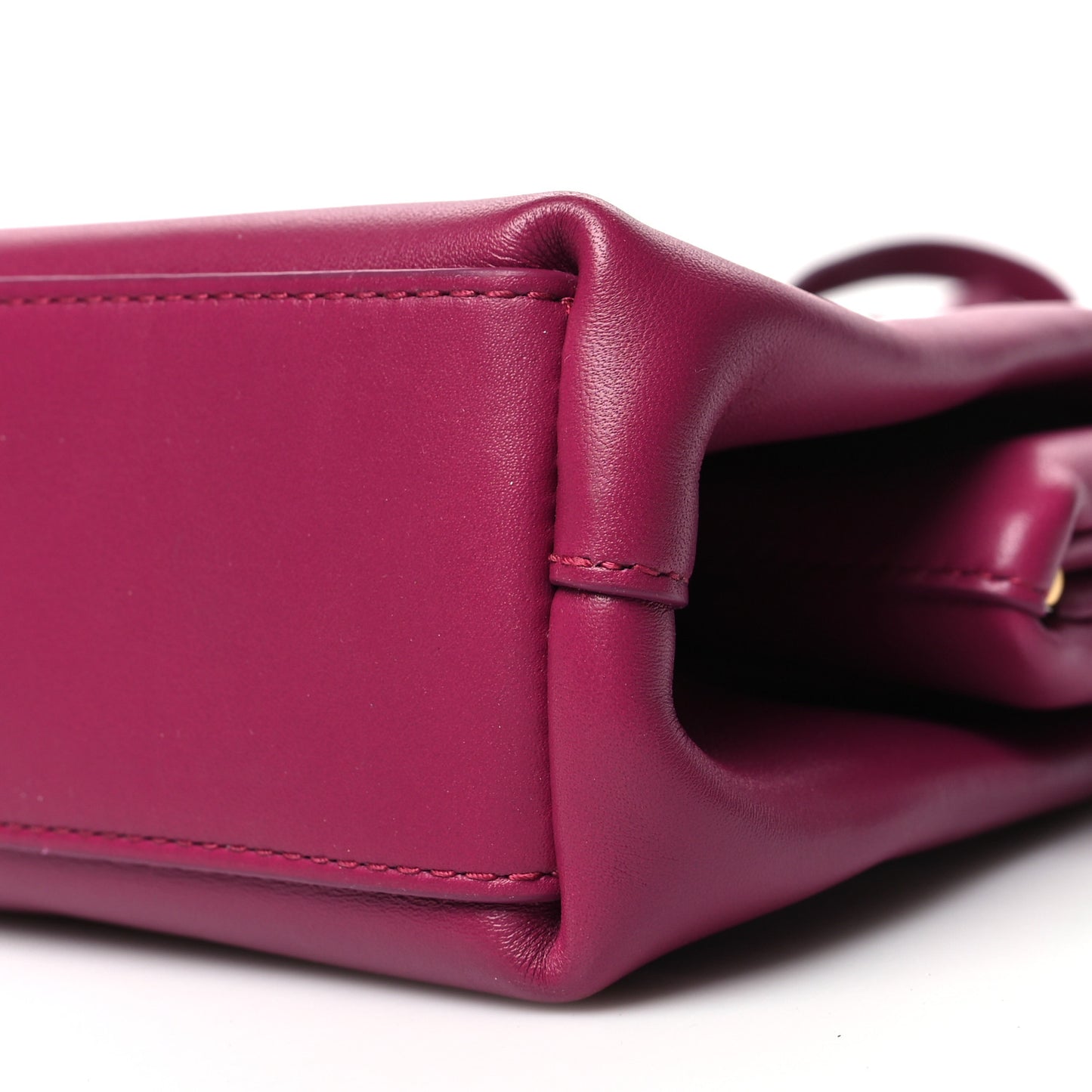 This is an authentic BOTTEGA VENETA Calfskin Small The Point Triangle Bag in Cinnabar. This stylish bag is crafted of calfskin leather in purple. The bag features a triangle handle and a leather shoulder strap. The magnetic closure opens to a matching leather interior.