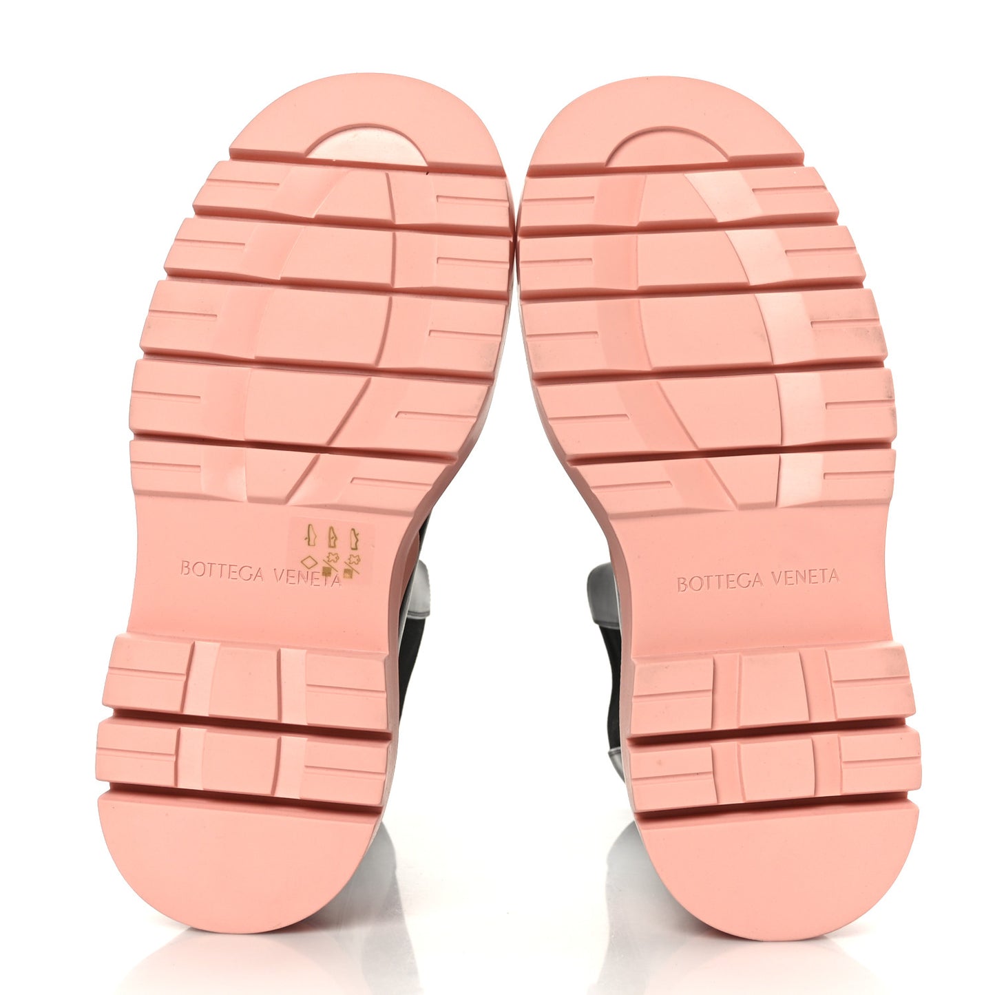 These are an authentic pair of BOTTEGA VENETA Calfskin The Tire Boots size 38 in Black and Peachy. The stunning boots are crafted of smooth black leather with pink rubber soles.Follow this item for alerts. Bottega Veneta is a registered trademark of Bottega Veneta. FASHIONPHILE is not affiliated with Bottega Veneta.