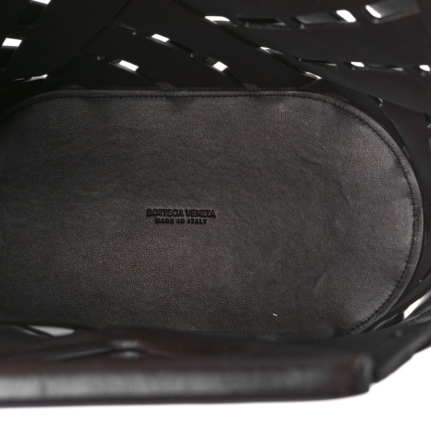 Calfskin V Woven Drawstring Tote Dark Brown