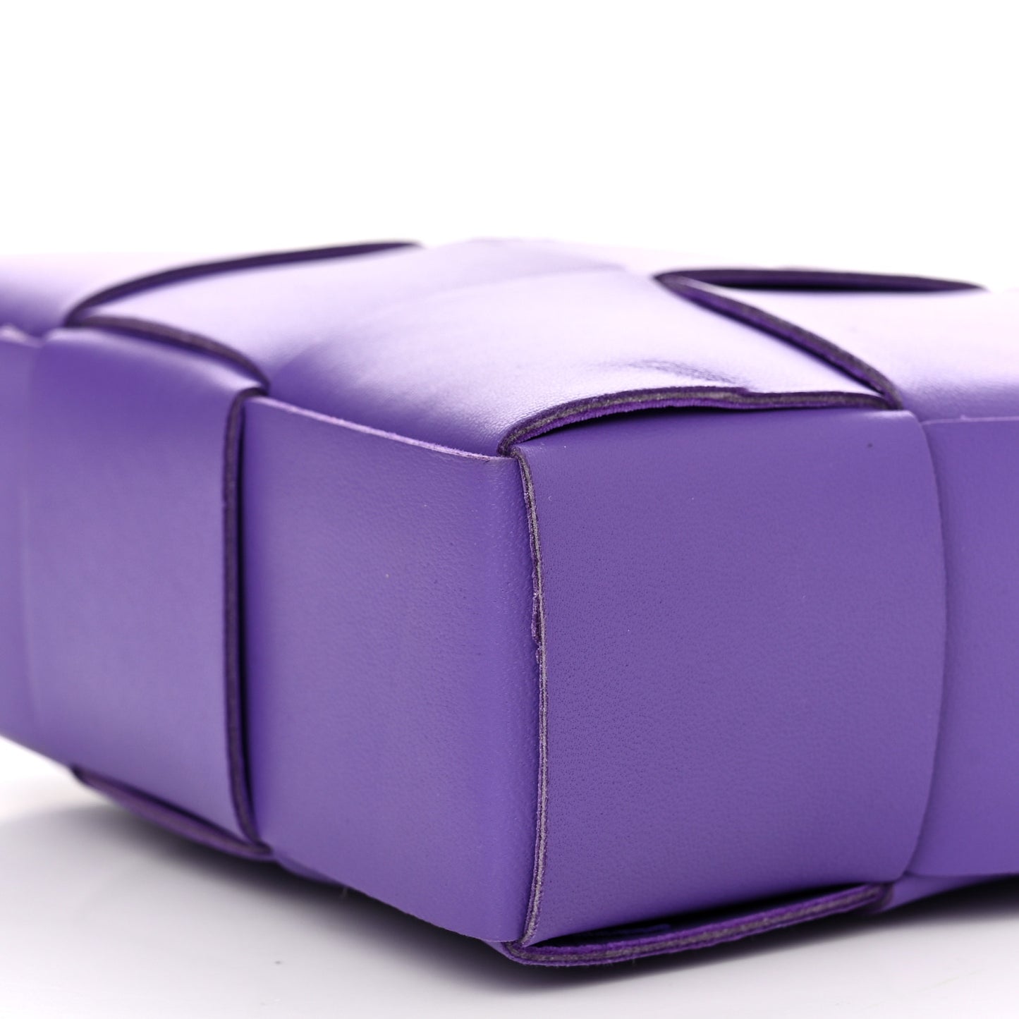 This is an authentic Bottega VENETA Lambskin Maxi Intrecciato North South Cassette Tote in Purple. This exceptional handbag is crafted of smooth purple lambskin leather in a maxi weave effect and features rolled leather top handles. The top is open to a matching leather interior with a zipper pocket.