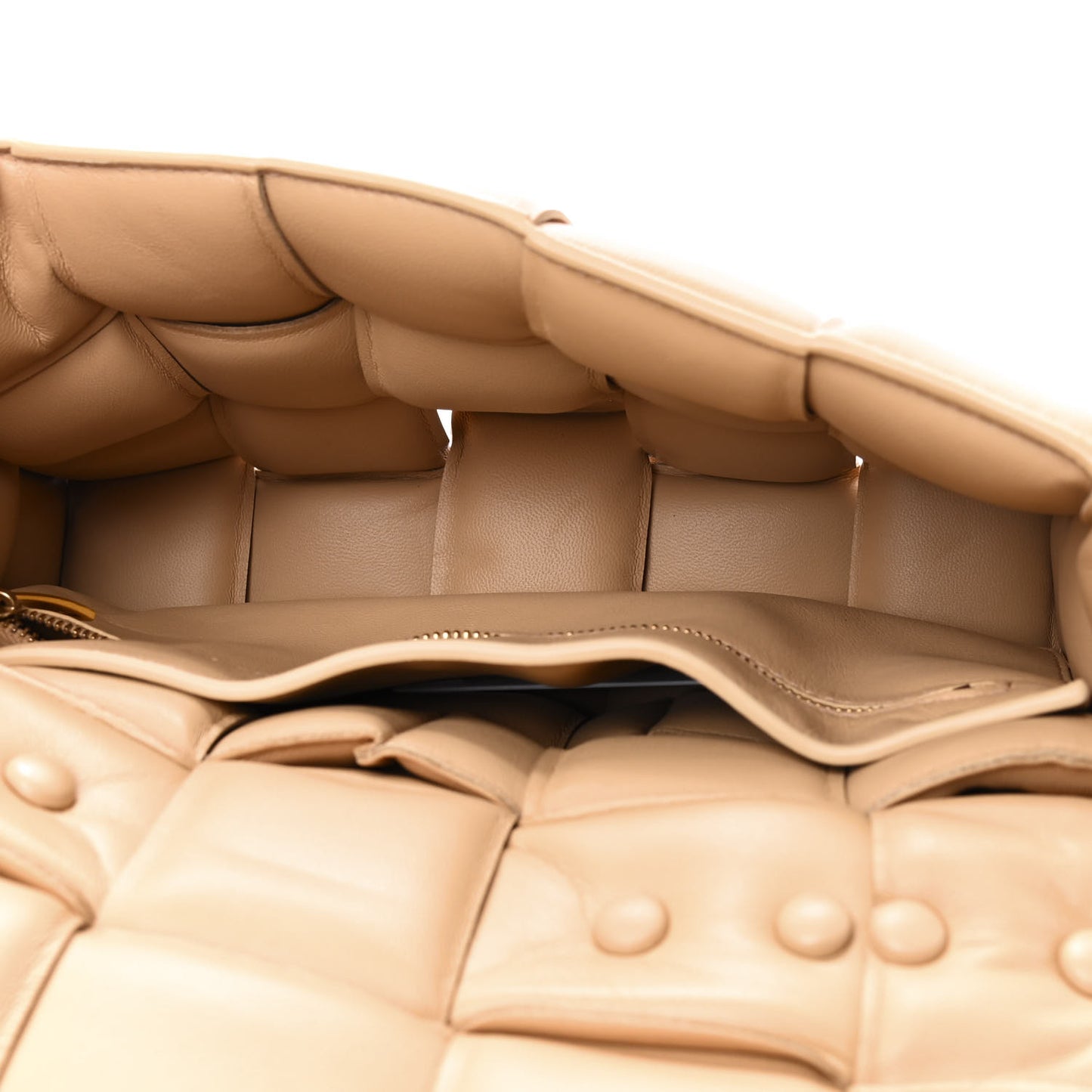 Lambskin Maxi Intreccio Padded Chain Cassette Crossbody Bag Almond