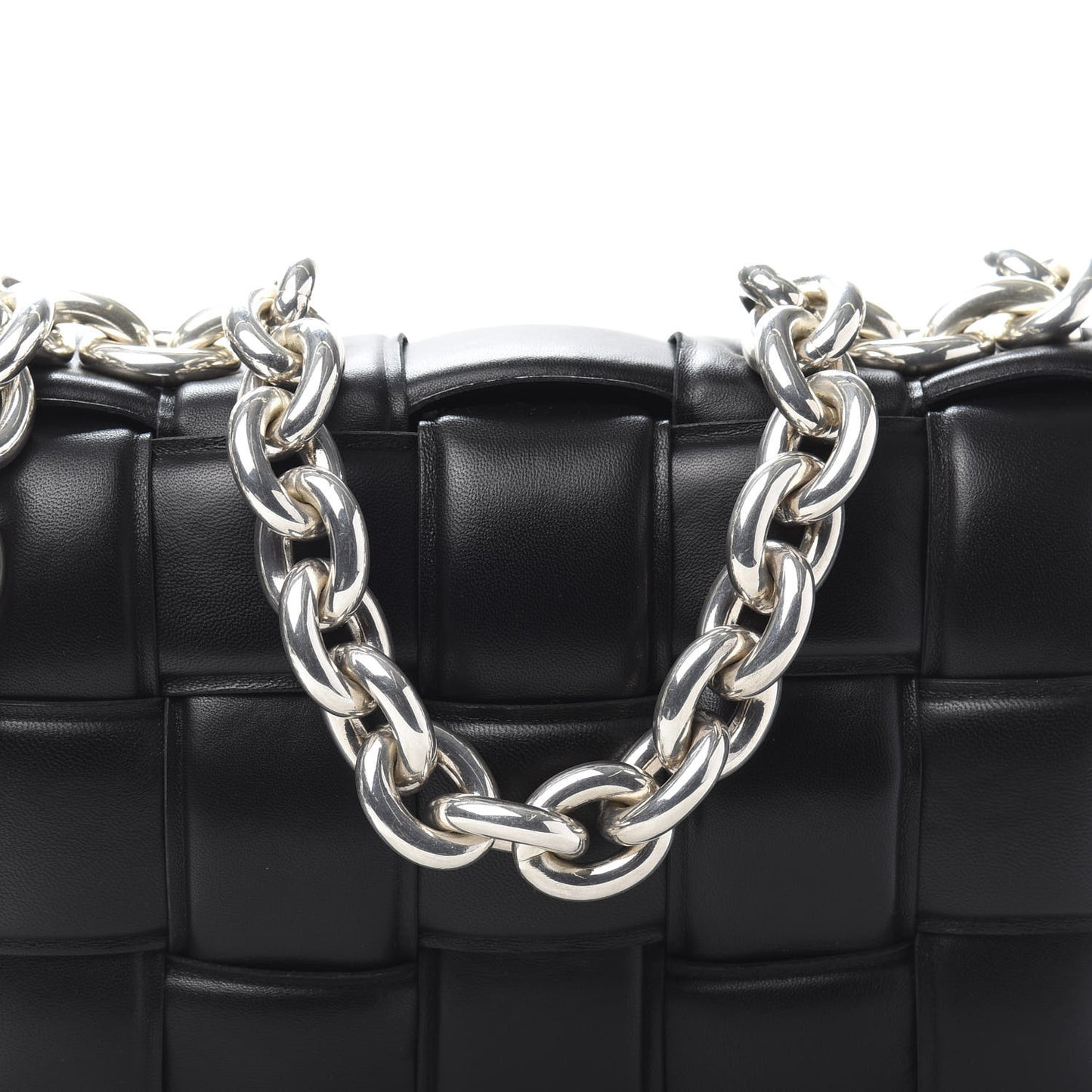 Bottega Veneta/ Bags/ Shoulder Bags /Bottega Veneta Lambskin Maxi Intreccio Padded Chain Cassette Crossbody Bag Black