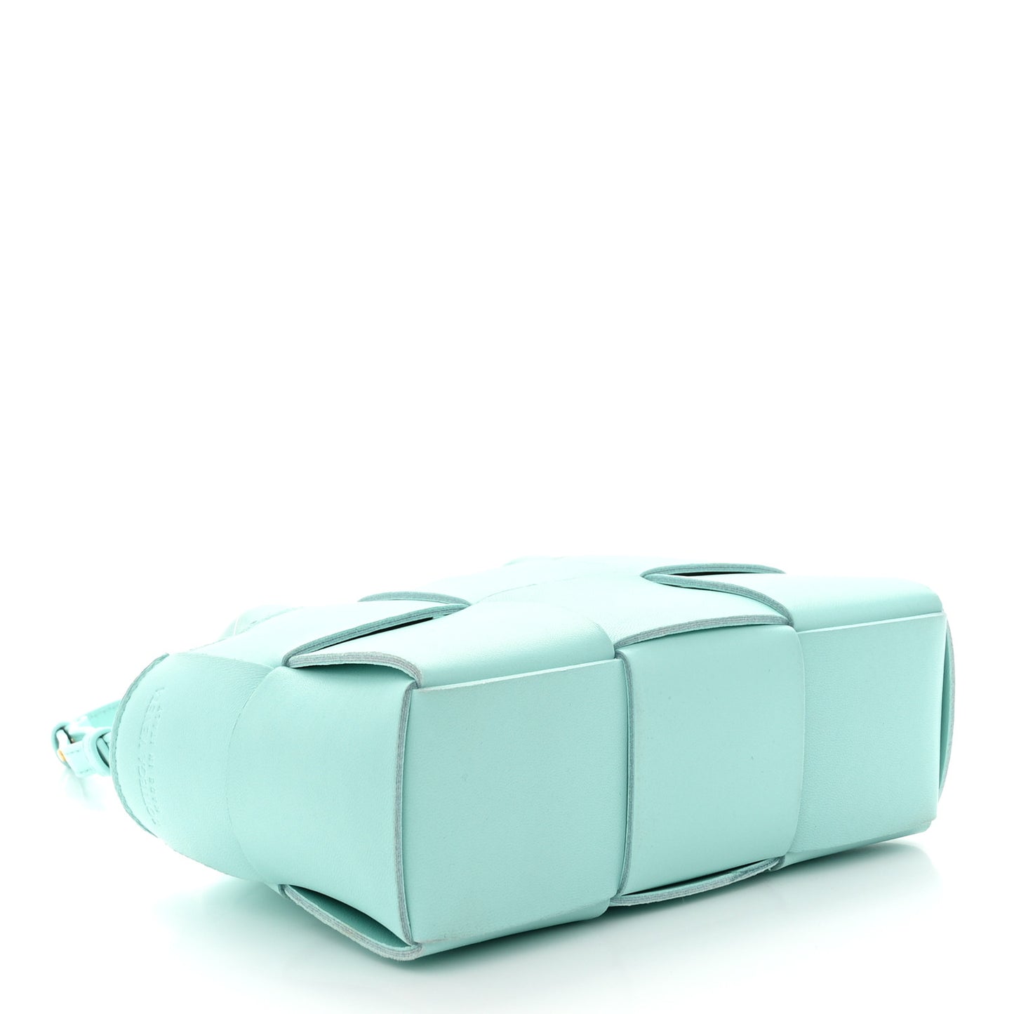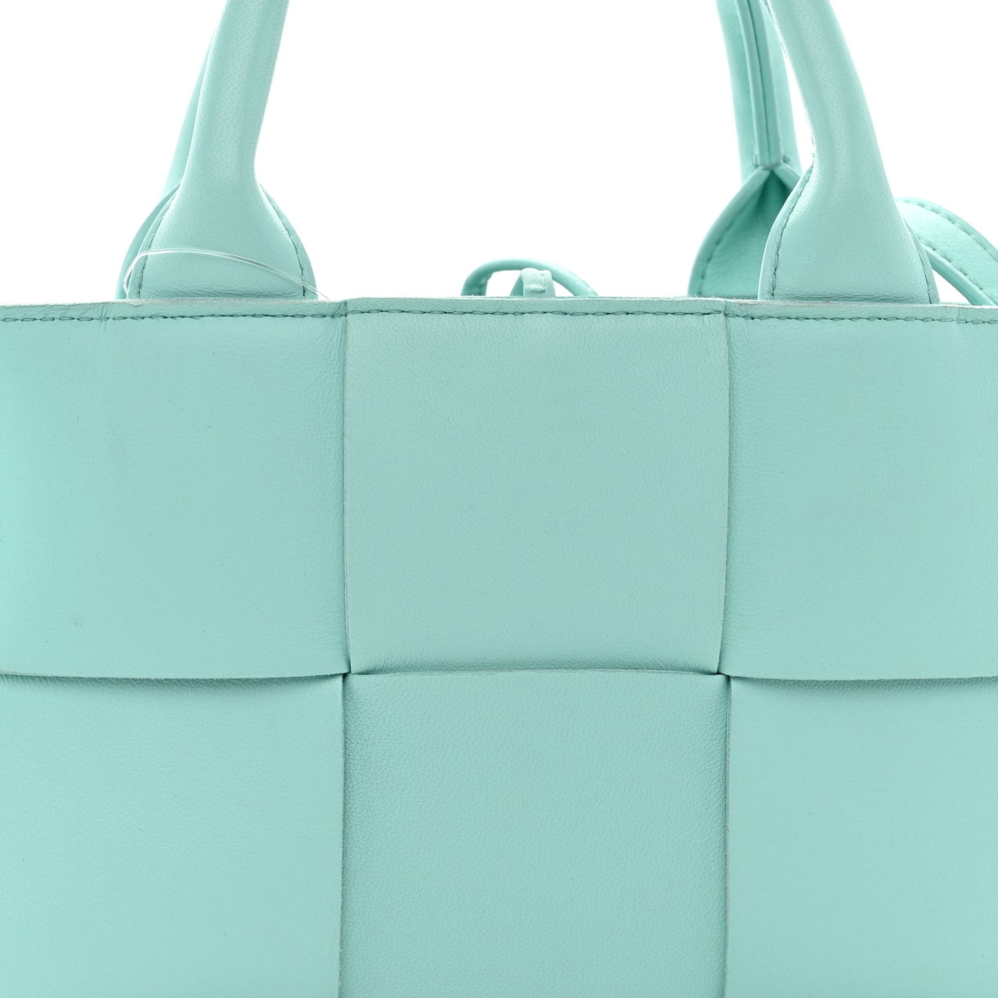 This is an authentic BOTTEGA VENETA Lambskin Maxi Intreccio Candy Arco Tote in Celadon. This exceptional handbag is crafted of bonded lambskin leather in blue with a maxi weave effect and features leather top handles, and an optional crossbody strap. The bag has an open top with a matching leather interior and a removable pouch.Follow this item for alerts. Bottega Veneta is a registered trademark of Bottega Veneta. FASHIONPHILE is not affiliated with Bottega Veneta.