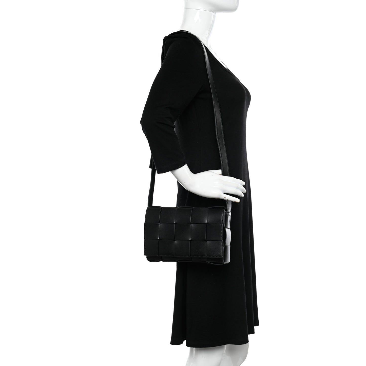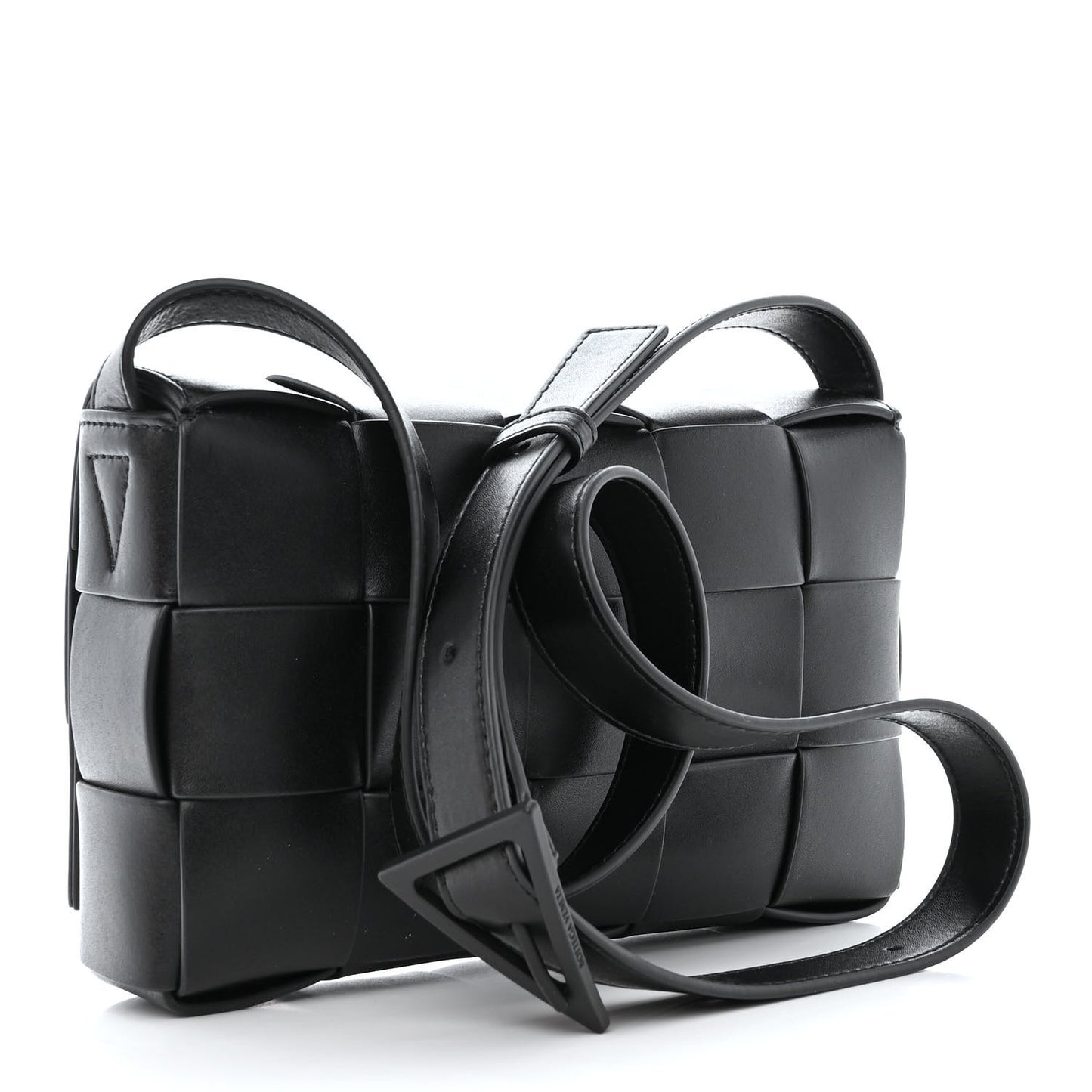 Bottega Veneta/ Bags/ Shoulder Bags /Bottega Veneta Lambskin Maxi Intreccio Small Cassette Crossbody Bag Black