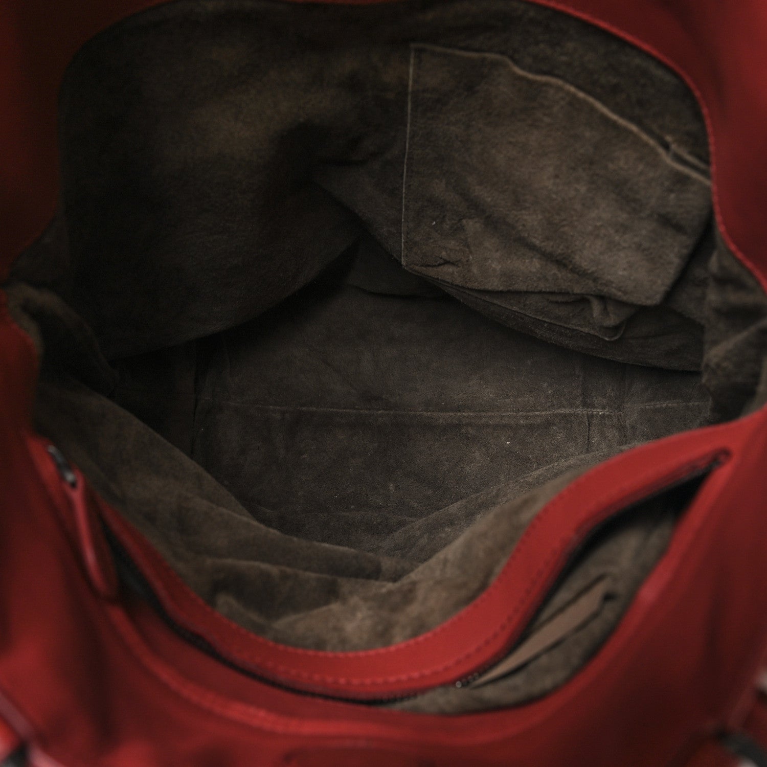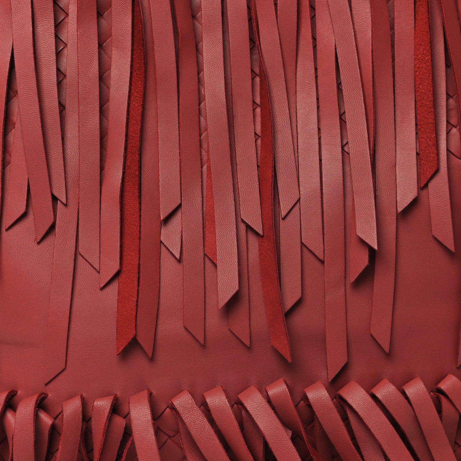 This is an authentic BOTTEGA VENETA Nappa Fringe Woven Handle Tote in Rust. This stylish tote is crafted of woven nappa leather in brick red. It features layers of fringe, aged silver top handles, an optional shoulder strap with matching hardware, and a magnet closure top. The bag opens to a taupe suede interior with zipper and patch pockets.Follow this item for alerts. Bottega Veneta is a registered trademark of Bottega Veneta. FASHIONPHILE is not affiliated with Bottega Veneta.